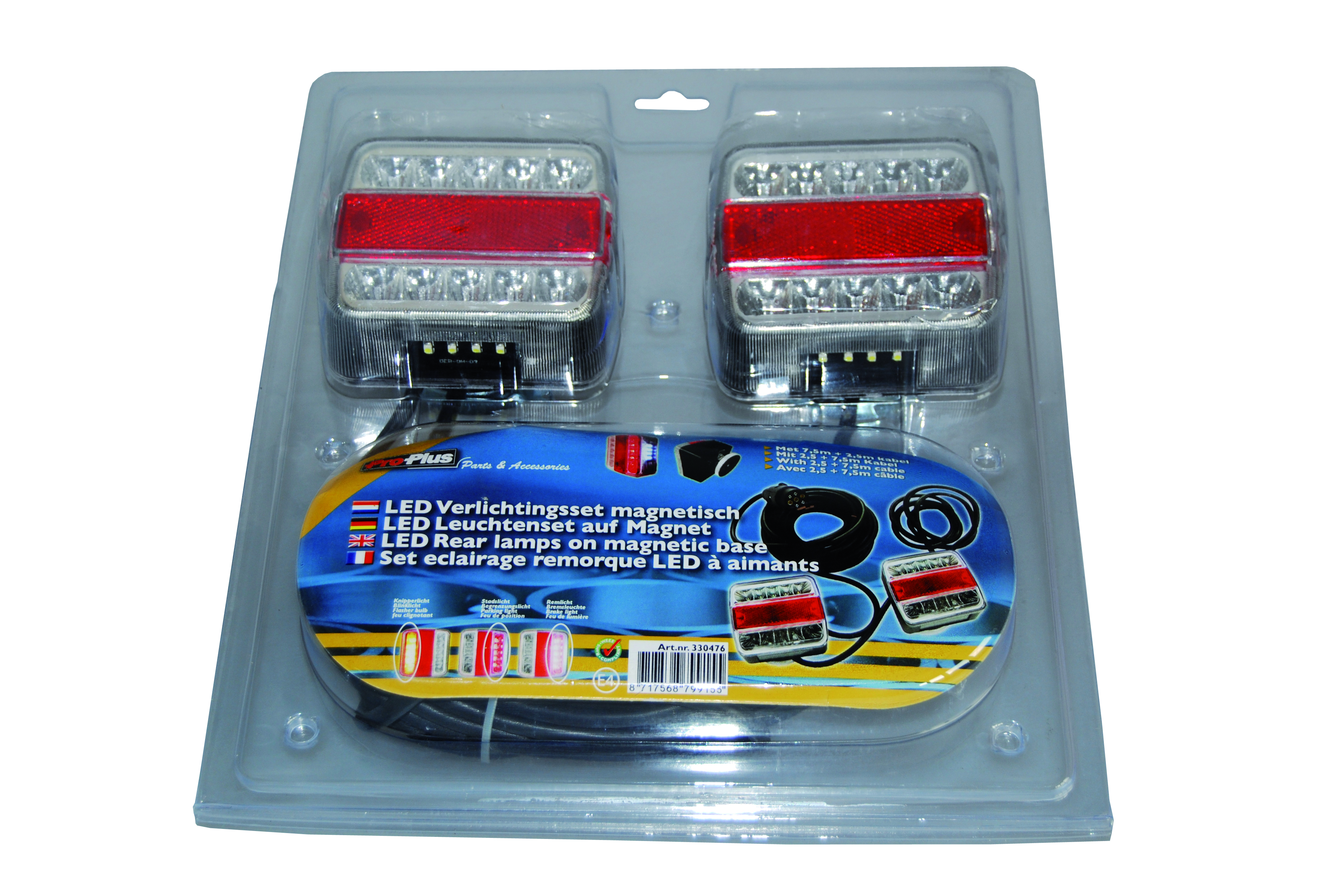 Beleuchtungsanlage LED, mit Hauptkabel 7,5 m, 7-poliger Stecker, 2 x Rückleuchte mit  Kennzeichenlicht/Rückstrahler, abschraubbare  Magnetbefestigung, Zwischenkabel 2,5 m