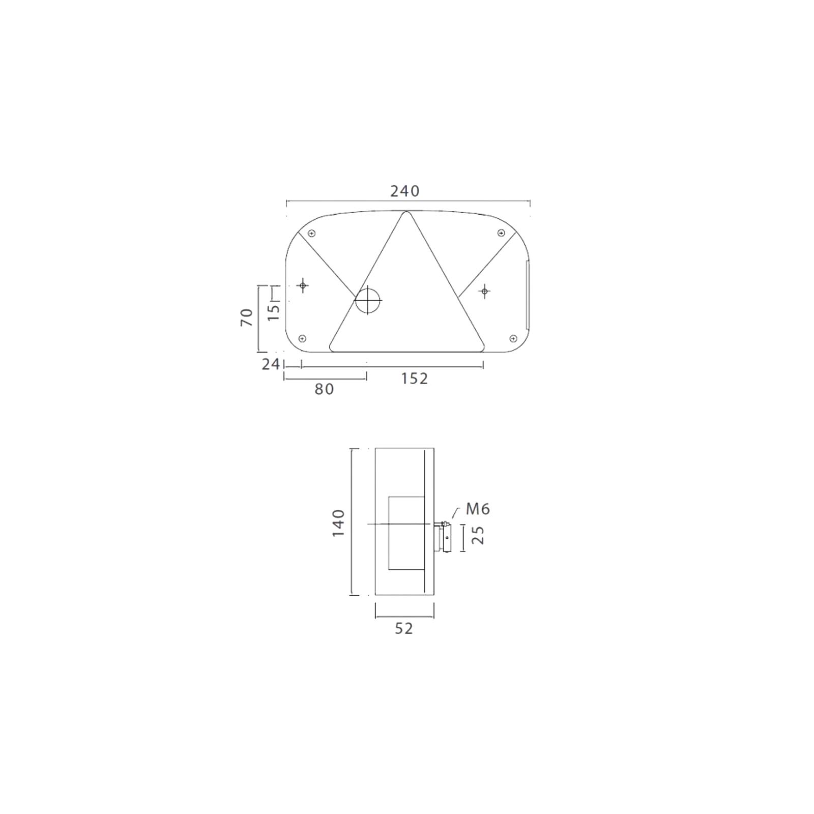ASPÖCK Multipoint II Rückleuchte rechts, mit Blink-, Brems-, Schluss-, Kennzeichen- und Rückfahrlicht, Dreieckrückstrahler, 5-poliger Bajonettanschluss, Leuchtmittel H: 140 x B: 240 x T: 52 mm