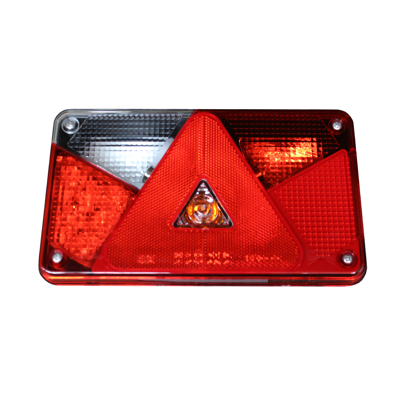 ASPÖCK Multipoint V Rückleuchte LED links, mit Blink-, Brems-, Schluss-, Kennzeichen-, Nebelschluss- und Rückfahrlicht, Dreieckrückstrahler, 8-poliger Bajonettanschluss, Leuchtmittel (LED-Einsatz bei Brems-/Schlusslicht) H: 140 x B: 238 x T: 55 mm