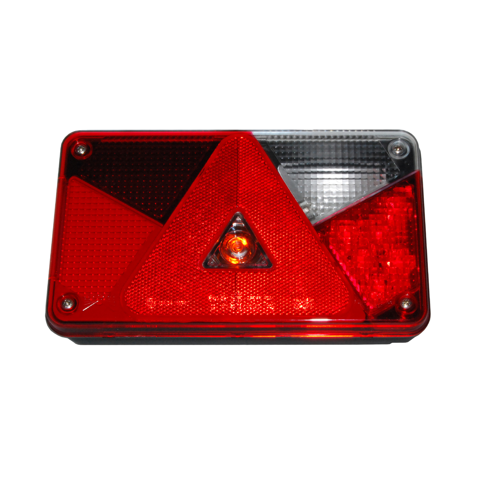 ASPÖCK Multipoint V Rückleuchte LED rechts, mit  Blink-, Brems-, Schluss-, Kennzeichen- und  Rückfahrlicht, Dreieckrückstrahler, 5-poliger Bajonettanschluss, Leuchtmittel (LED-Einsatz bei Brems-/Schlusslicht) H: 140 x B: 238 x T: 55 mm