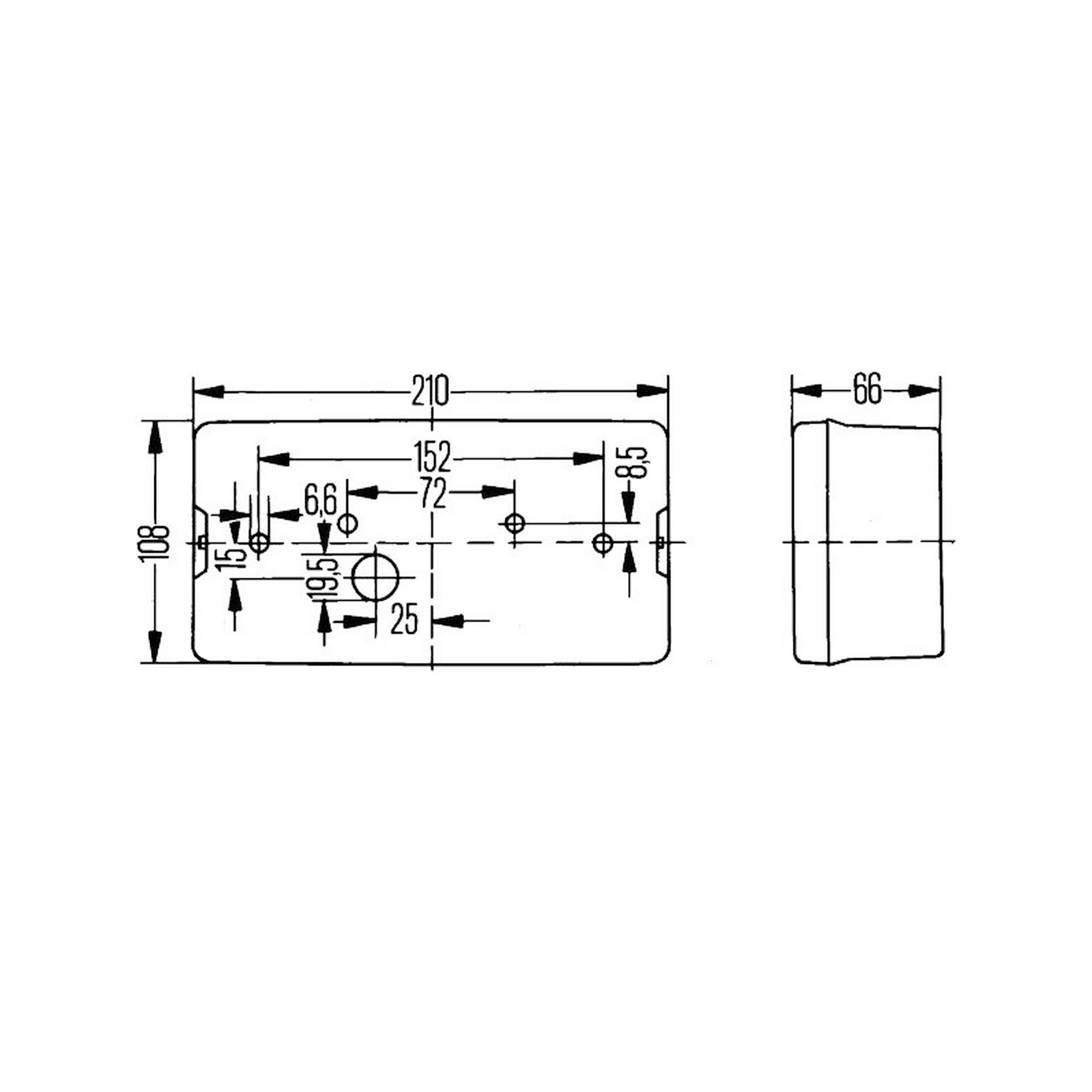 HELLA 2SD 006 040-041 Rückleuchte rechts, mit Blink-, Brems-, Schluss- und Nebelschlusslicht, horizontal, 12/24 Volt H: 108 x B: 210 x T: 66 mm