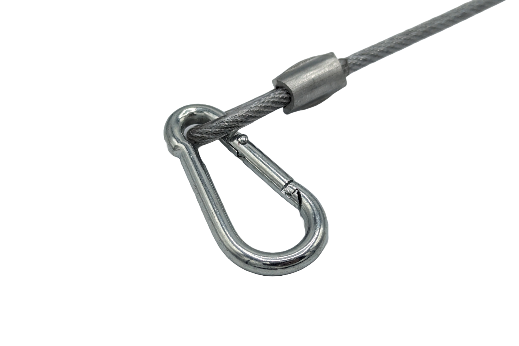 Bordwandhalteseil, ⌀ 5 x 360 mm, mit Karabienerhaken/Ösenschraube