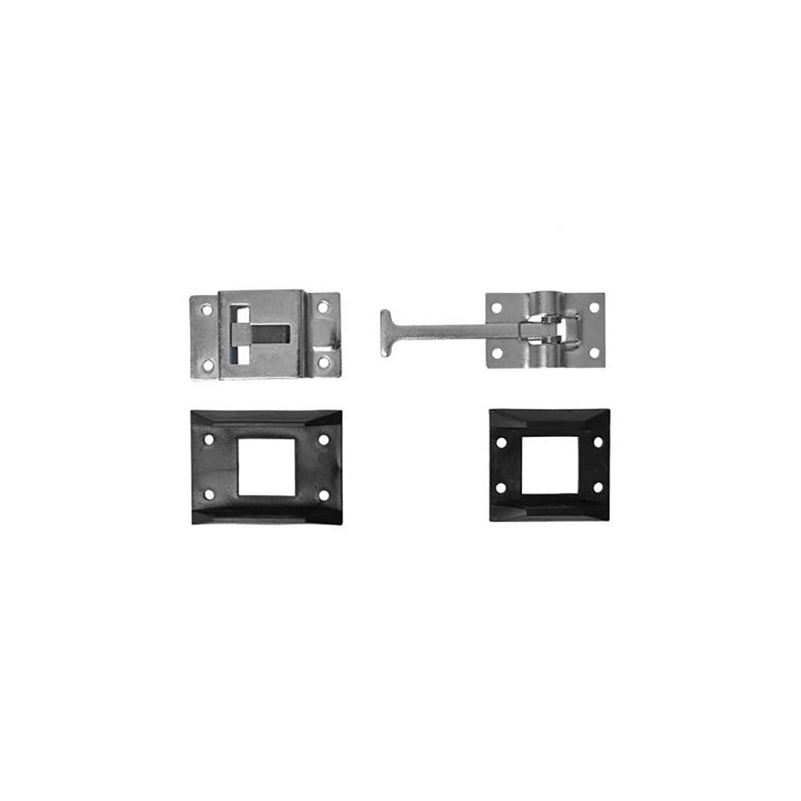 Türfeststeller, komplett, mit Hakenteil,  Halteteil, 2 Schutzeinfassungen