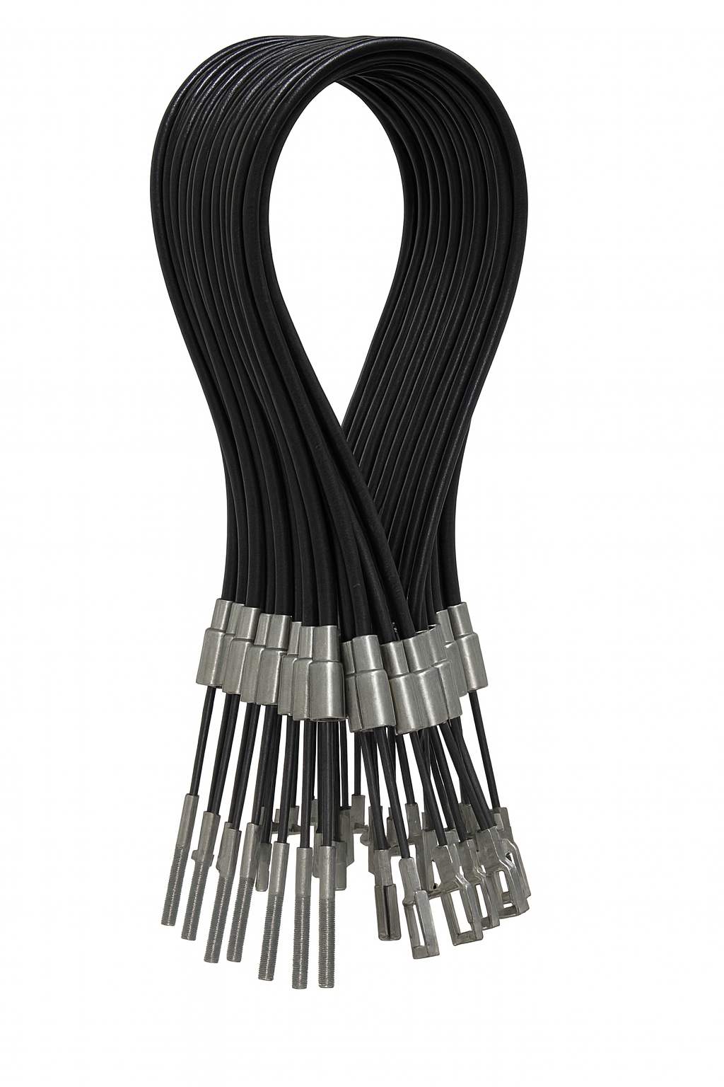 12 tlg. Bremsseil-Set HL 1400 / SL 1700 mm Typ Langlochöse 15 x 7 und Gewinde M8, sortenrein (Art. 90063)