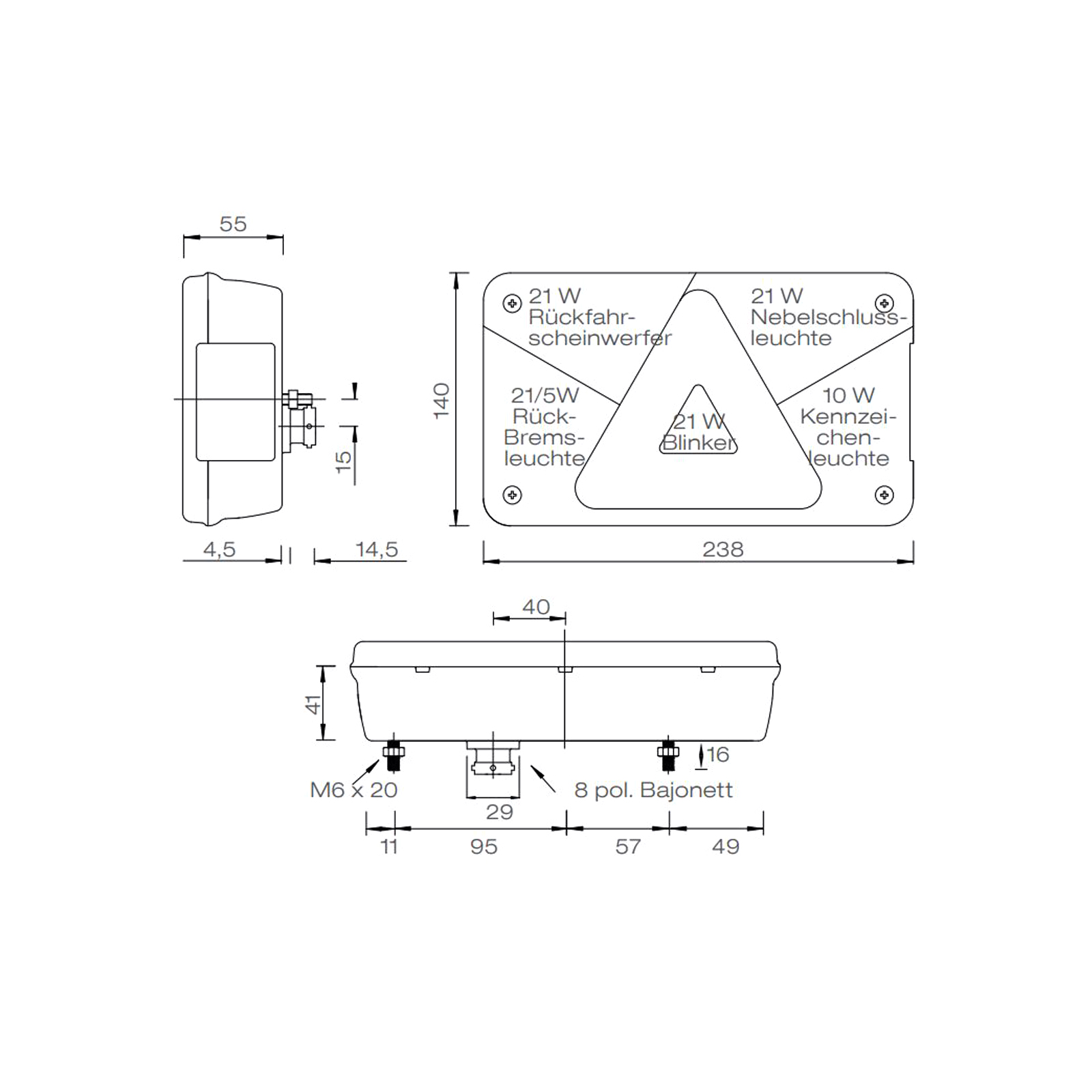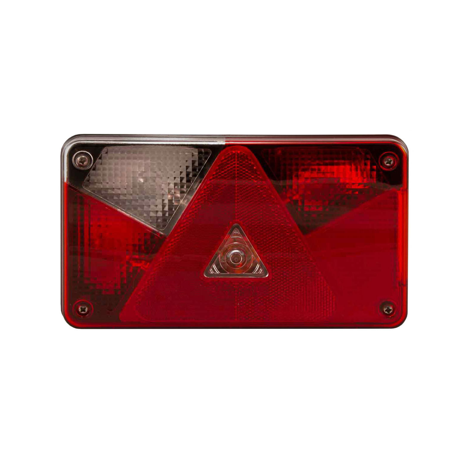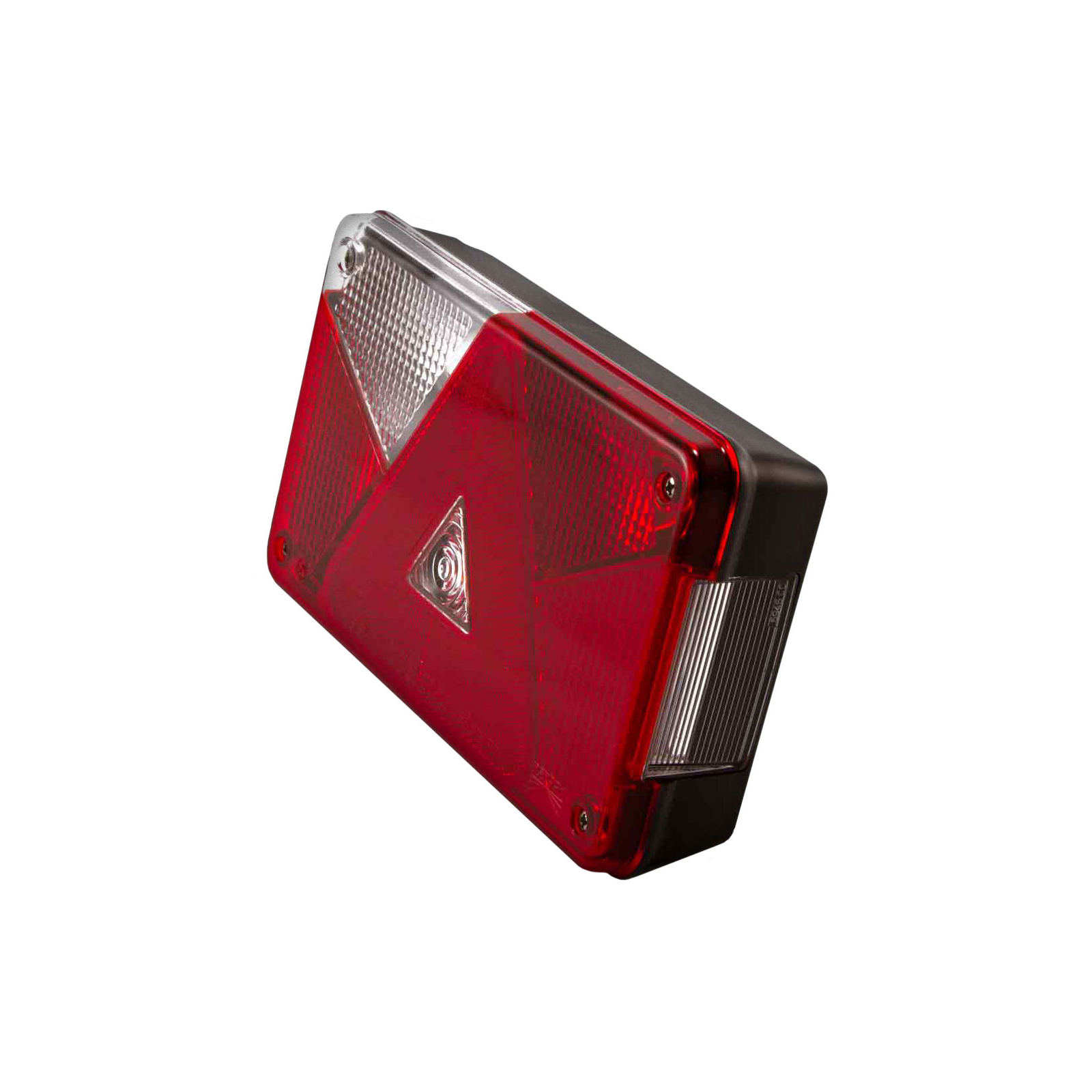 Set aus 12 x ASPÖCK Multipoint V Rückleuchte links, mit Blink-, Brems-, Schluss-, Kennzeichen-, Nebelschluss- und Rückfahrlicht, Dreieckrückstrahler, 8-poliger Bajonettanschluss, Leuchtmittel H: 140 x B: 238 x T: 55 mm
