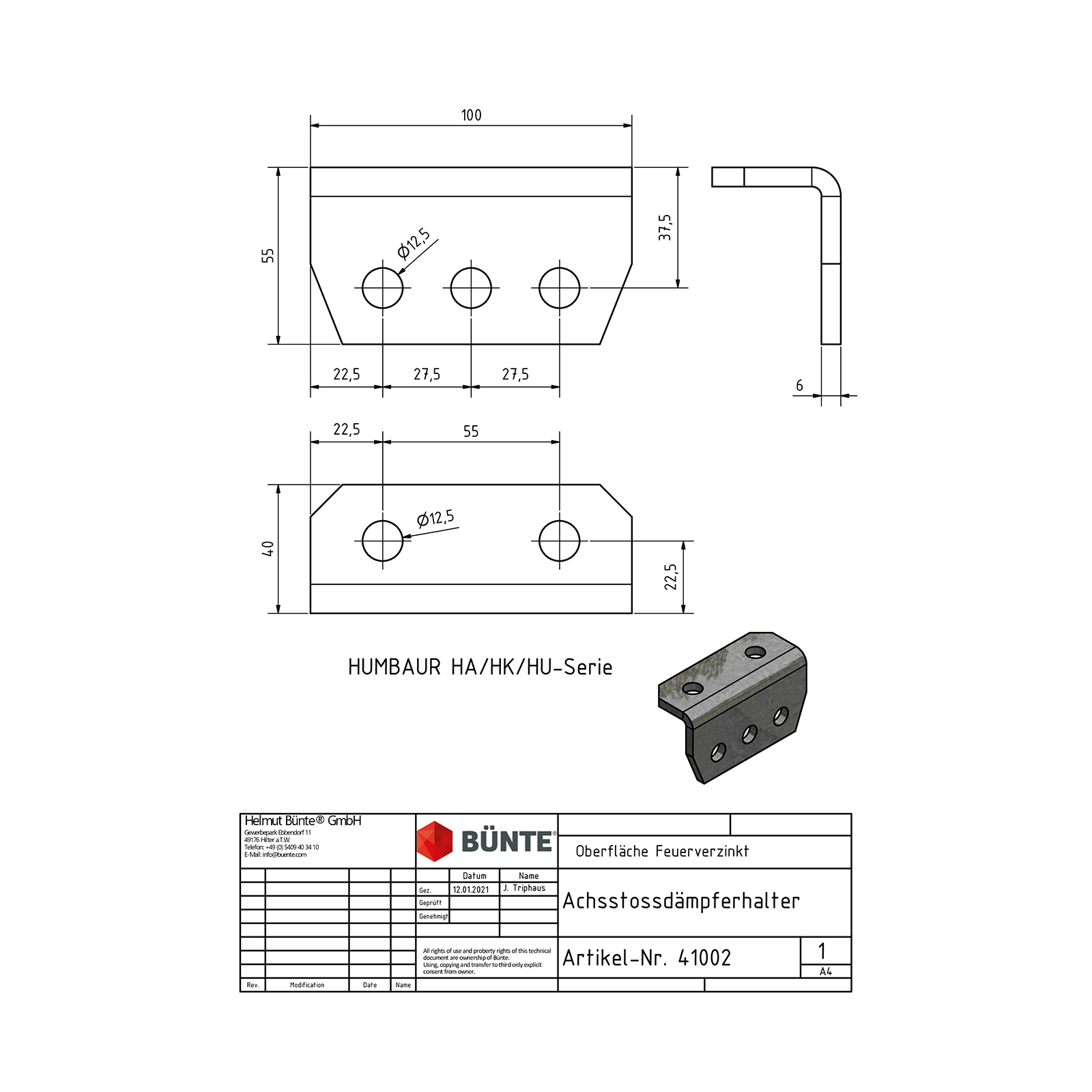 BÜNTE Achsstoßdämpferhalter, 40 x 100 x 55 mm