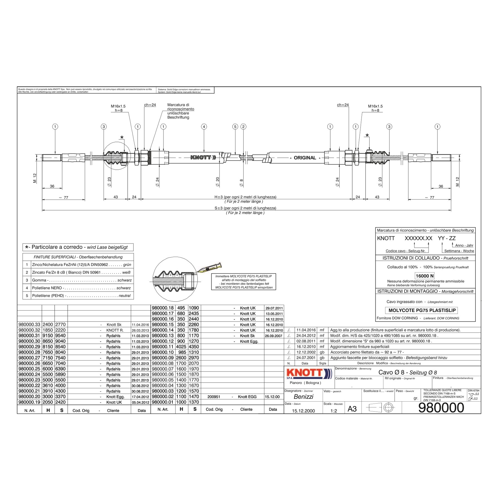 KNOTT Bowdenzug, Hüllenlange 1700/Seillänge 2070 mm, Gewinde Seil M12, Gewinde Hülle M16, ⌀ Seil 8 mm, ⌀ Hülle 20 mm