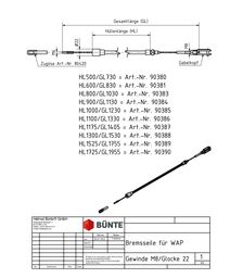 WAP Bremsseil, HL 500/SL 730 mm Glocke Ø 22 mm, m. Gabelkopf ...