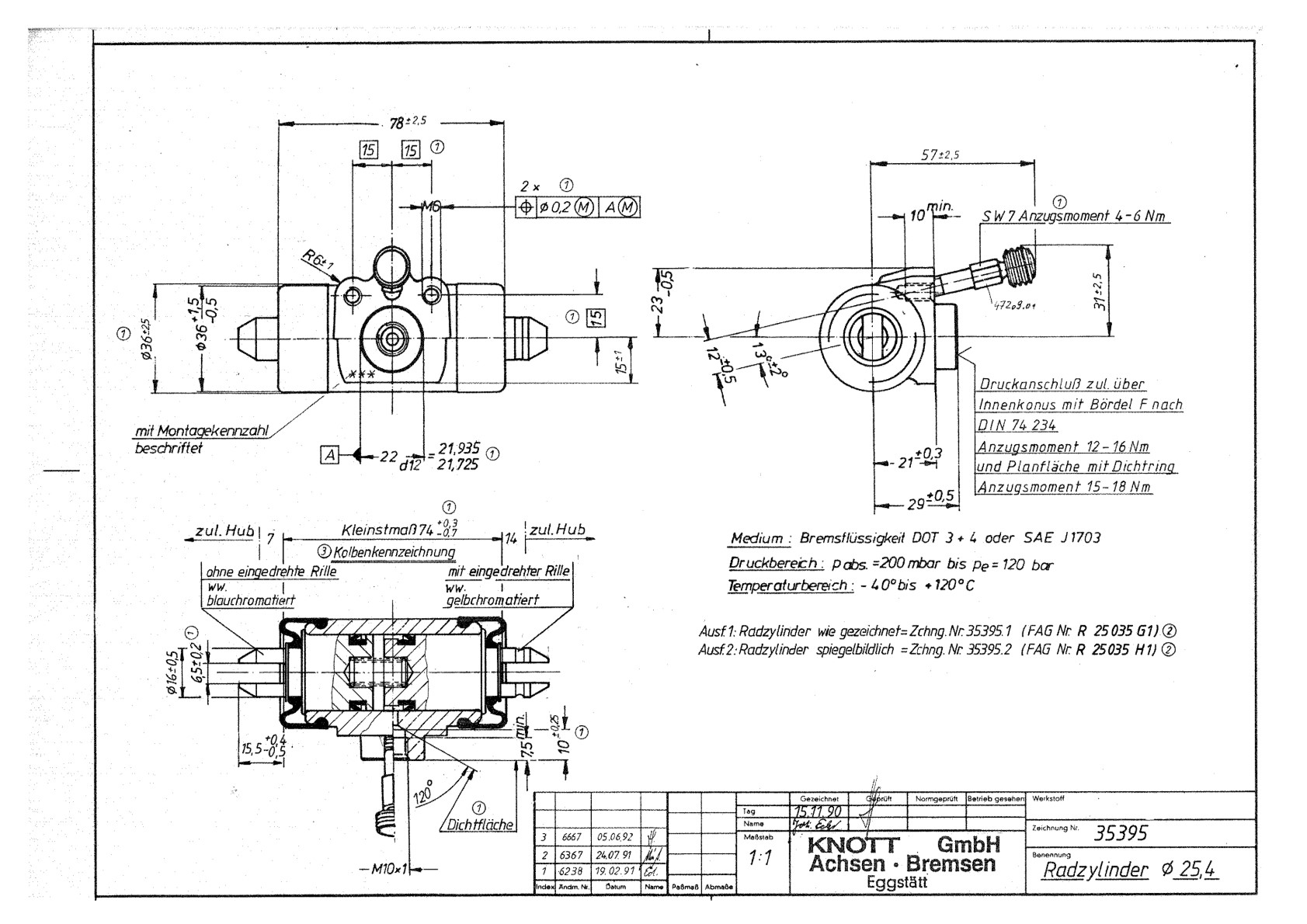 Radbremszylinder links, ⌀ 25,40 mm, für KNOTT  Radbremse 20-2710 hydraulisch