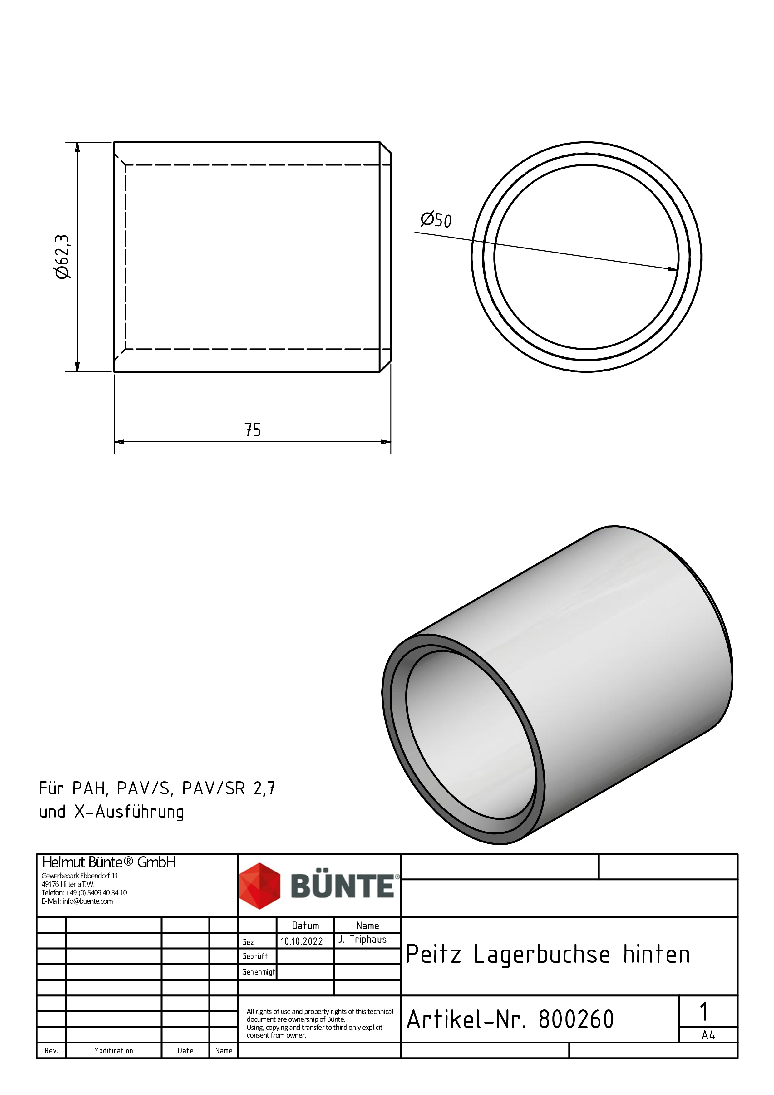 Lagerbuchse, hinten, für PEITZ PAV/SR 2,7/2,7 X,  PAV/S 1,2-2,0, PAH 0,85-2,7 (vorne/hinten)