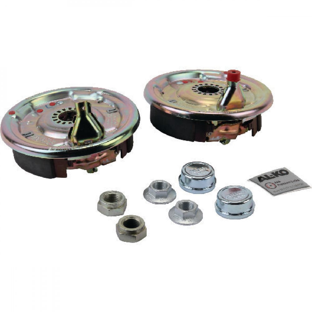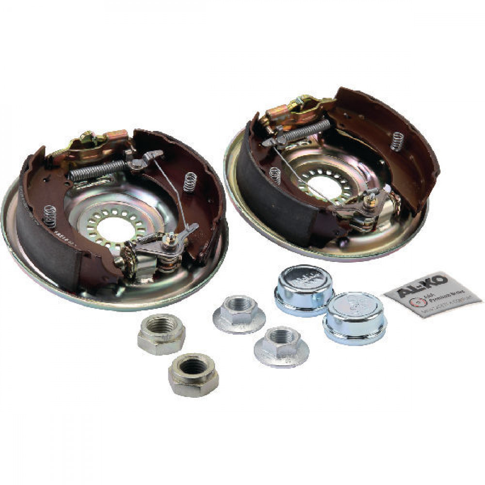 AL-KO Umrüstsatz, 230 x 60 mm, für Radbremse 2361 AAA, selbstnachstellende Bremse, mit 2 x Ankerblech mit montierter Radbremse, 2 x Fettkappe, 2 x Flanschmutter, 2 x Achsmutter, Version Zahnverschraubung