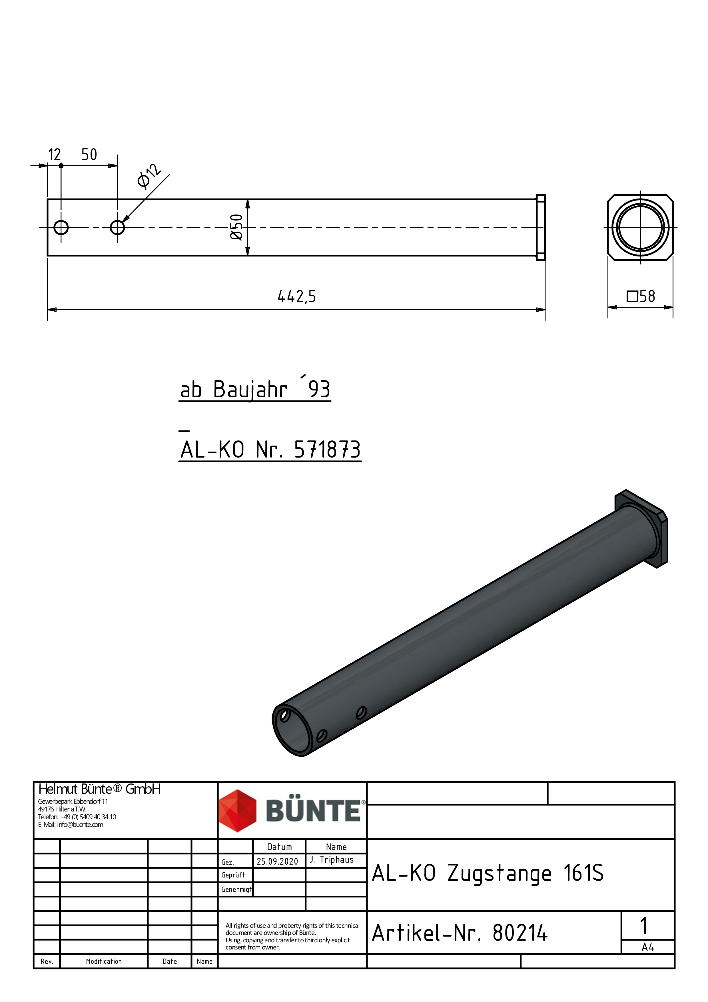AL-KO Zugstange, für 161 S, ⌀ 50 x 445 mm, geschweißte Ausführung, ab Baujahr 1993
