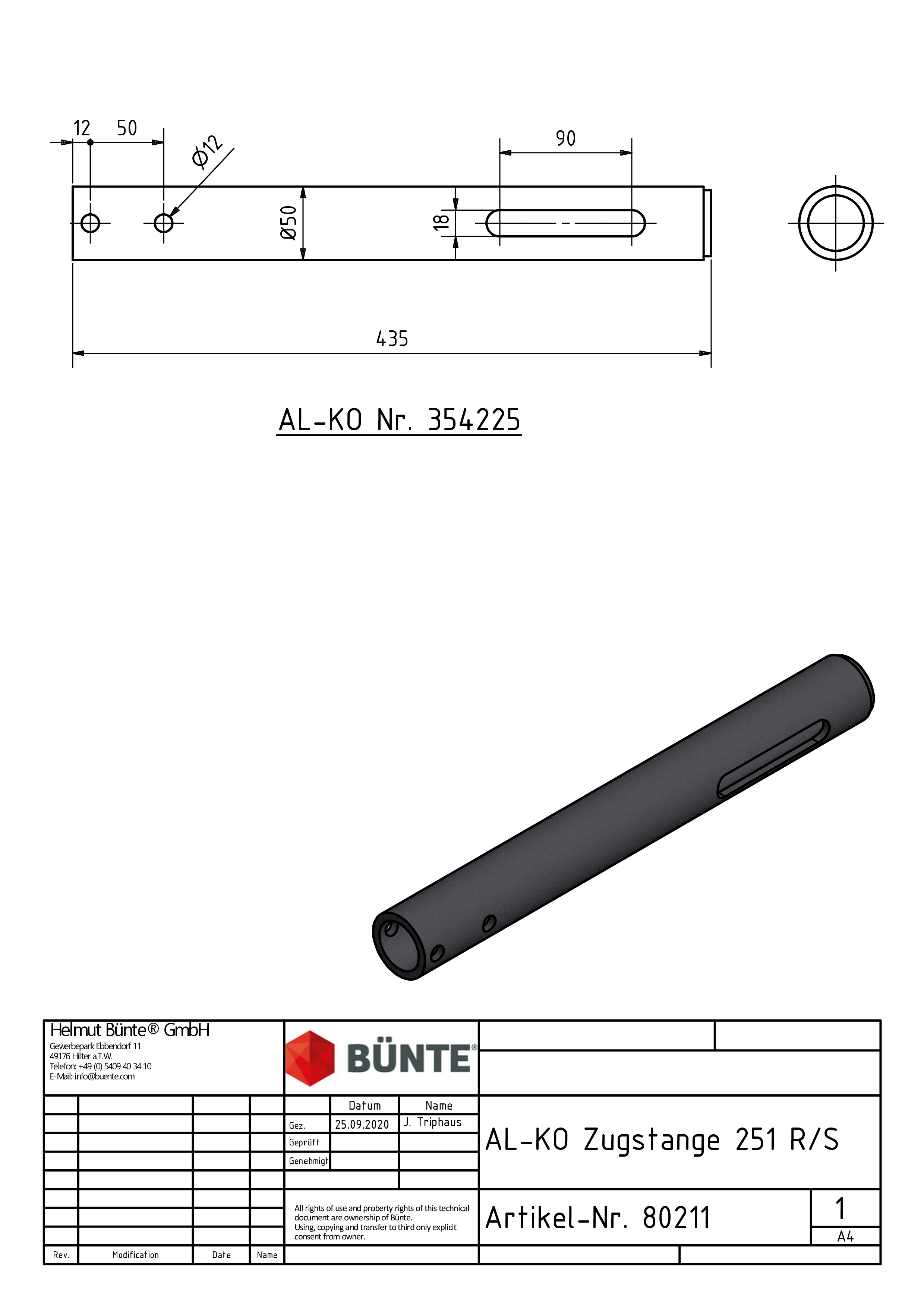 AL-KO Zugstange, für 251 R/S, ⌀ 50 x 435 mm, geschweißte Ausführung, bis Baujahr 1992