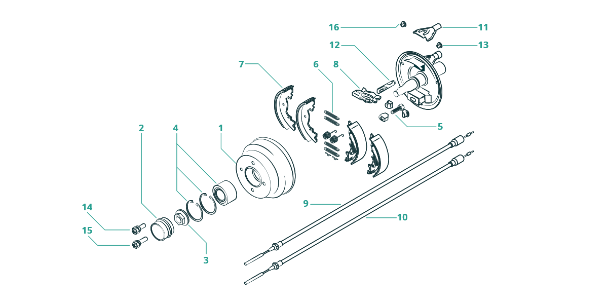 BremsnabeKappe Ø 64 mmFlanschmutterSchrägkugellager Ø 64 mmNachstellsetFedern-SetBremsbacken-SetSpreizschloss