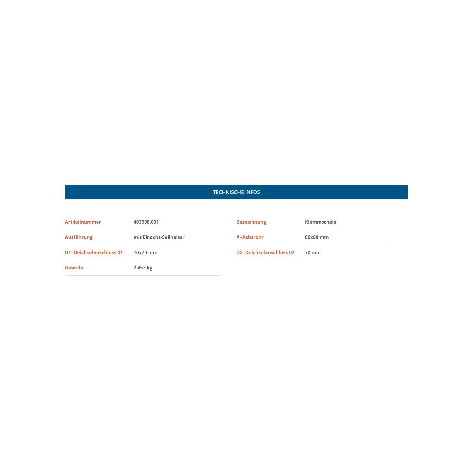 KNOTT Klemmschale, mit Einachsseilhalter, für  Deichselrohr ⌀ 70/Vkt. 70 mm/Achsrohr Vkt. 80 mm, inklusive Schraubenmaterial