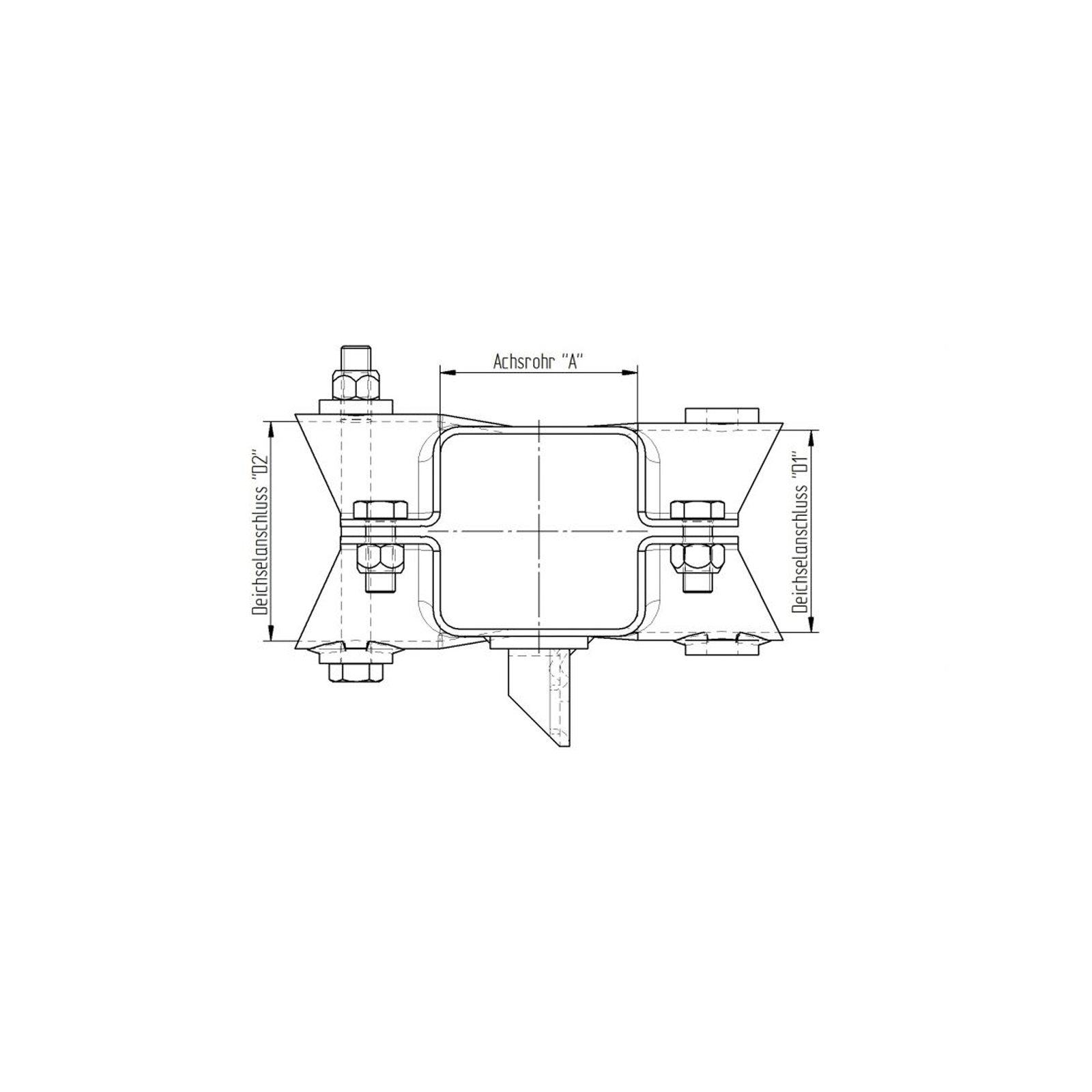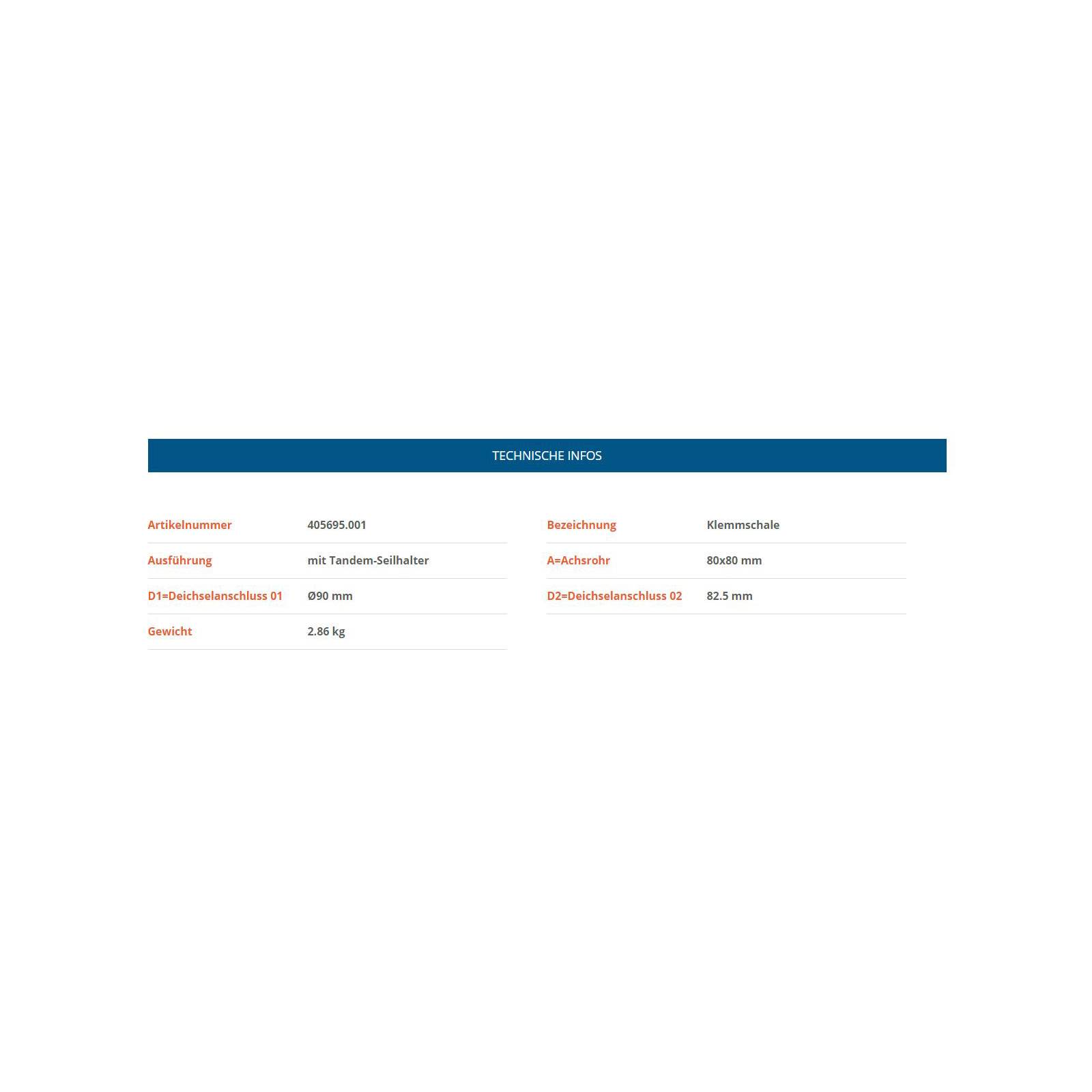 KNOTT Klemmschale, mit Tandemseilhalter, für  Deichselrohr ⌀ 82,5/⌀ 90 mm/Achsrohr Vkt. 80 mm, inklusive Schraubenmaterial