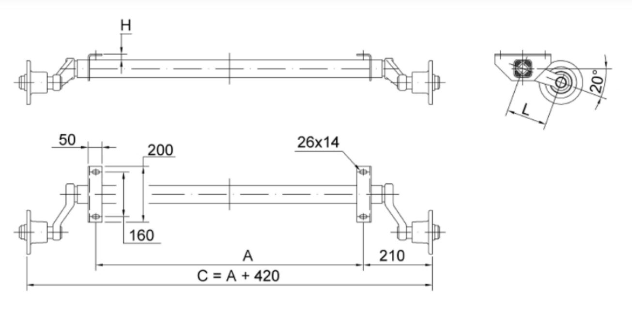 SCHLEGL Laufachse MB8, Ausf. B, 750 kg, AM: 1500 mm, FM: 1920 mm, Vkt. 60 mm, Ans.: 100/4