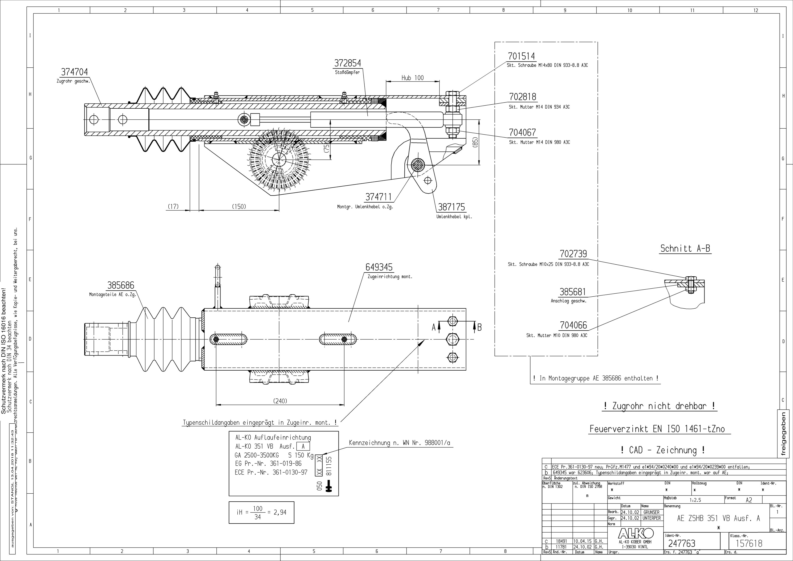 AL-KO Auflaufeinrichtung 351 VB-A, Kopfteil, mit Zahnscheiben, für Radbremse 2051/2361, ETI 811155