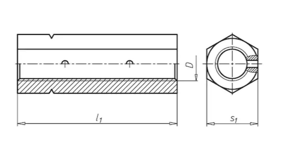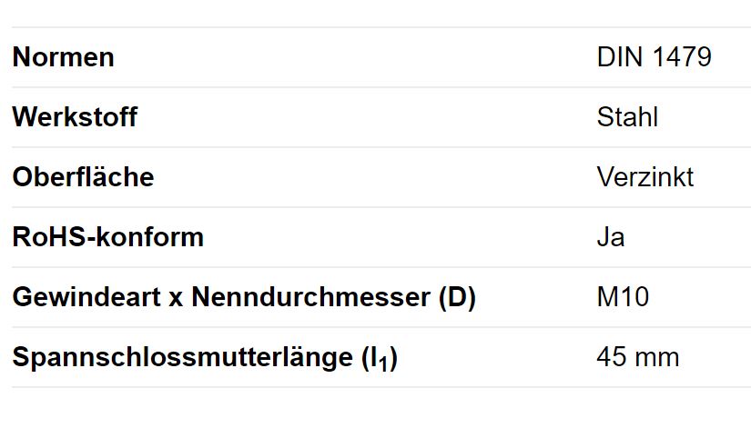 Spannschlossmutter, M10 x 45 mm, Schlüsselweite 16