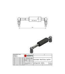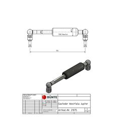 Gasfeder 10/22, 1300 N, 155 mm, 43 mm Hub m. 2 x Winkelgelen...
