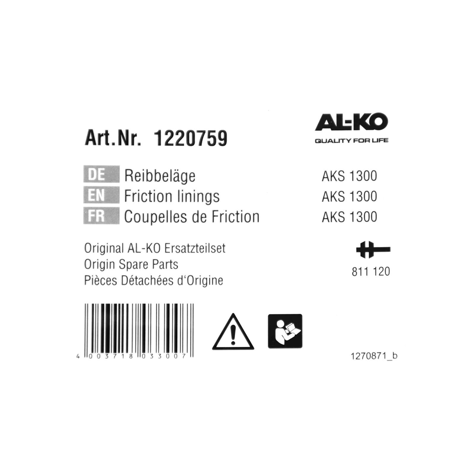 AL-KO Reibbelagsatz, für Antischlingerkupplung  AKS 1300, links/rechts, ETI 811120