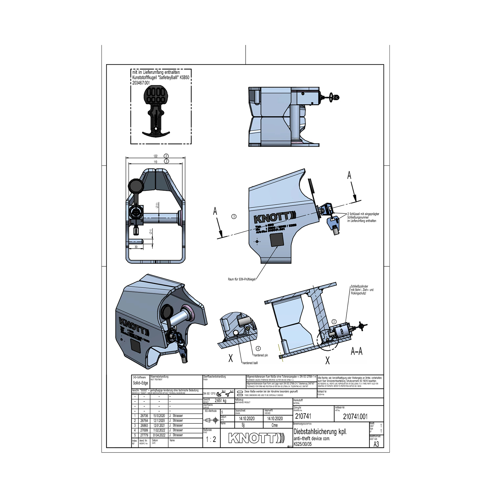KNOTT Diebstahlsicherung Premium, für Antischlingerkupplung KS25/30/35, mit Safety-Ball, 2 Schlüssel, SCM geprüft