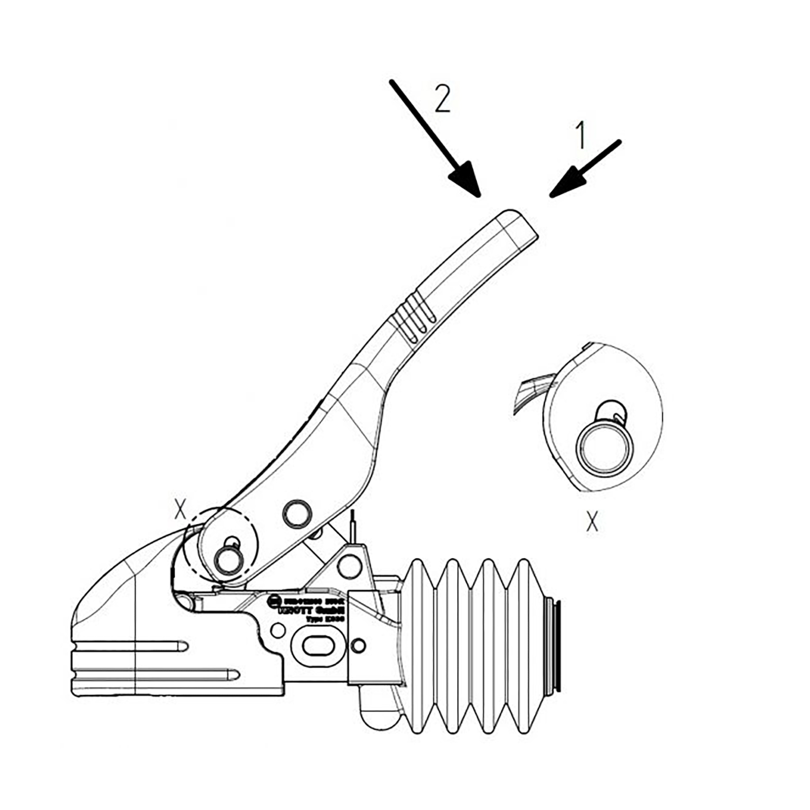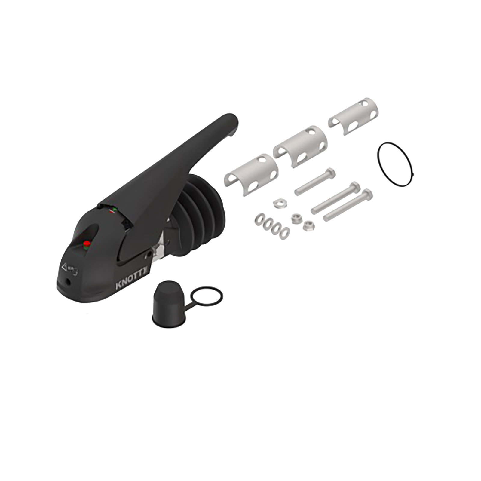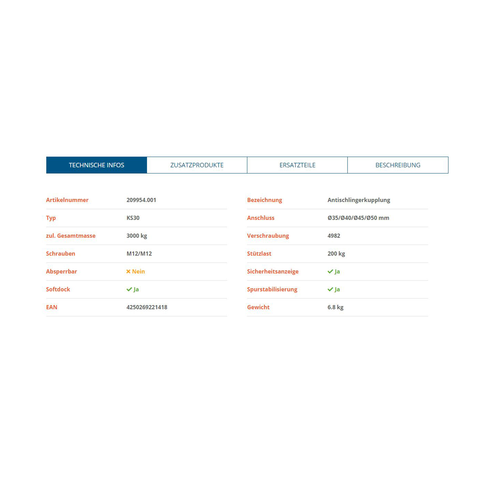 KNOTT Antischlingerkupplung KS30, universal, bis  3000 kg, ⌀ 35/40/45/50 mm, Lochabstand kreuz/horizontal 40/54 mm, Bohrungen ⌀ 12,5 mm,  Stützlast 200 kg, mit Faltenbalg, Schutzkappe,  Zubehör, Guss verzinkt