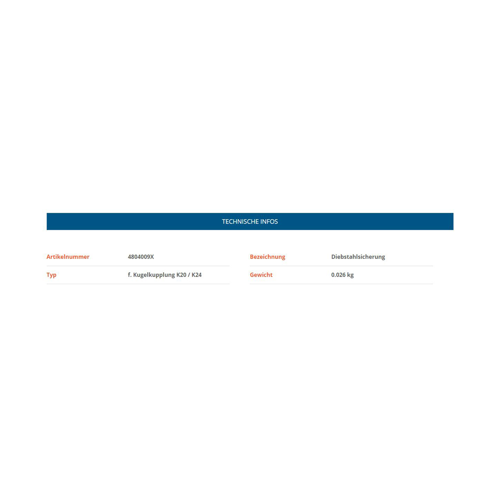 KNOTT Steckschloss, für Zugkugelkupplung K20/K24
