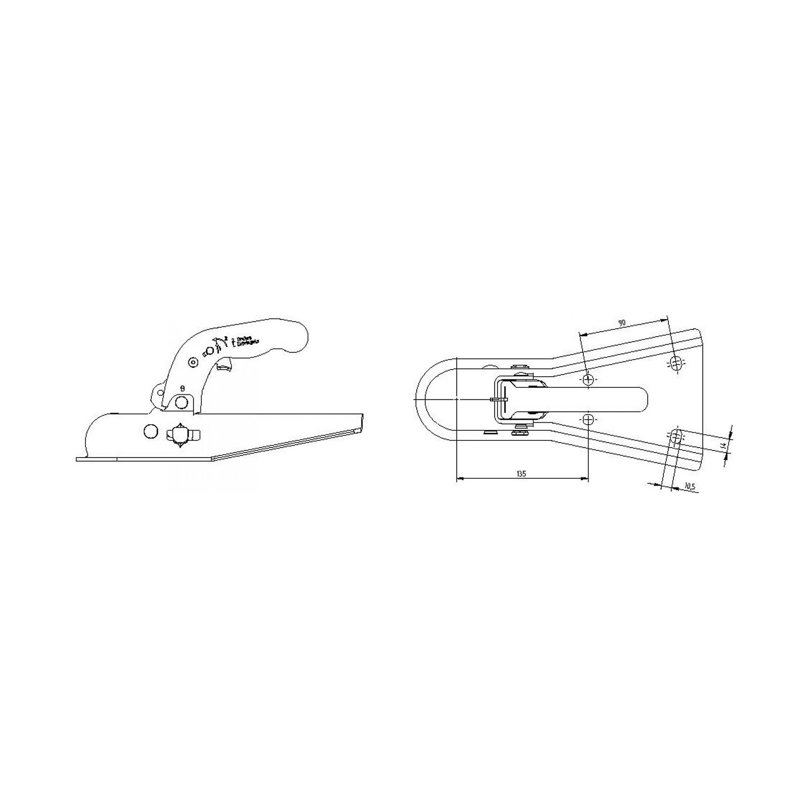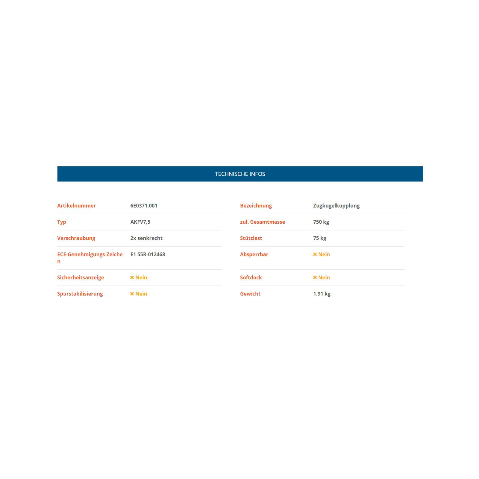 KNOTT Zugkugelkupplung AKFV7,5, bis 750 kg, V-Deichsel, Lochabstand vertikal 40/75/90 mm, Bohrungen ⌀ 10,5 mm, Stützlast 75 kg, Stahl verzinkt