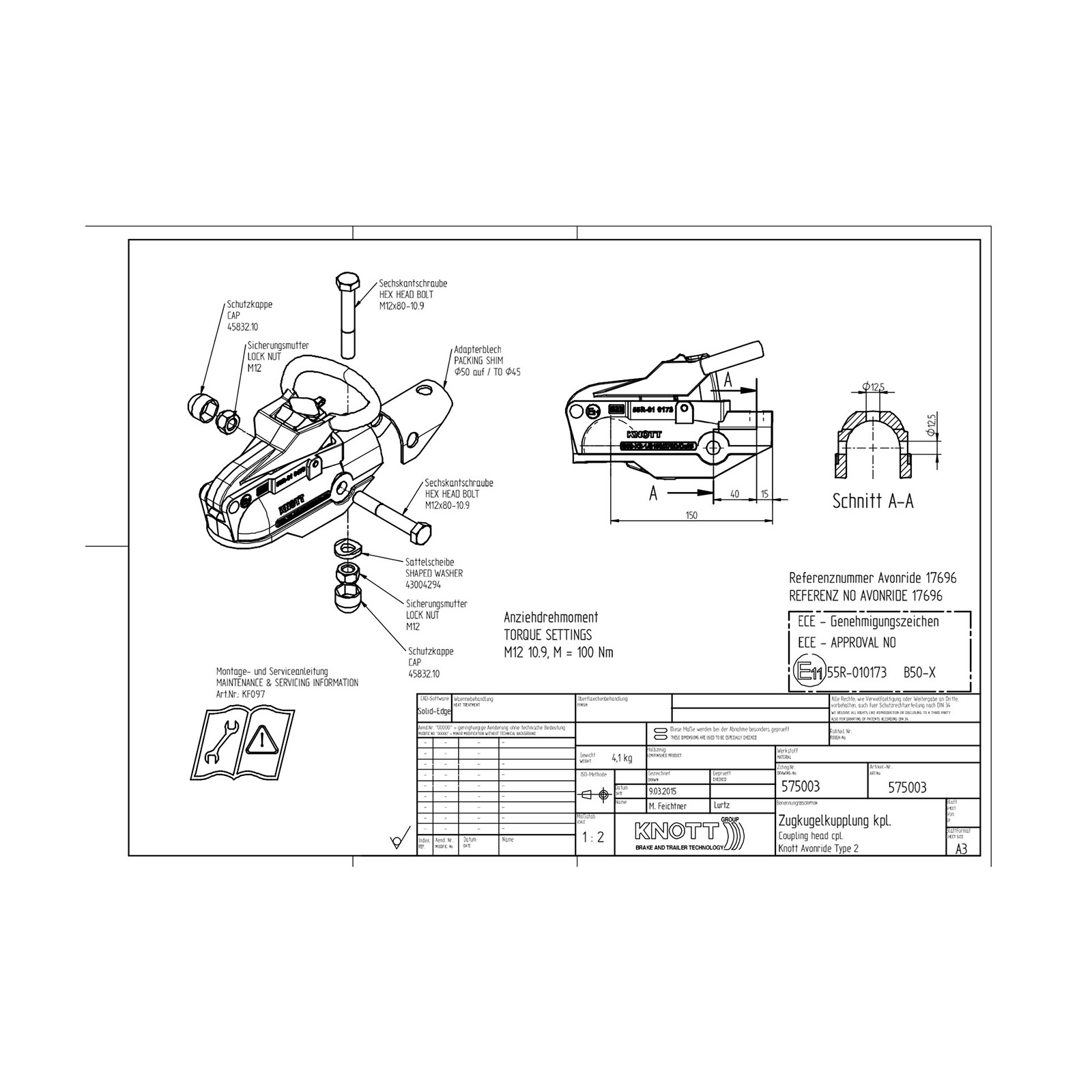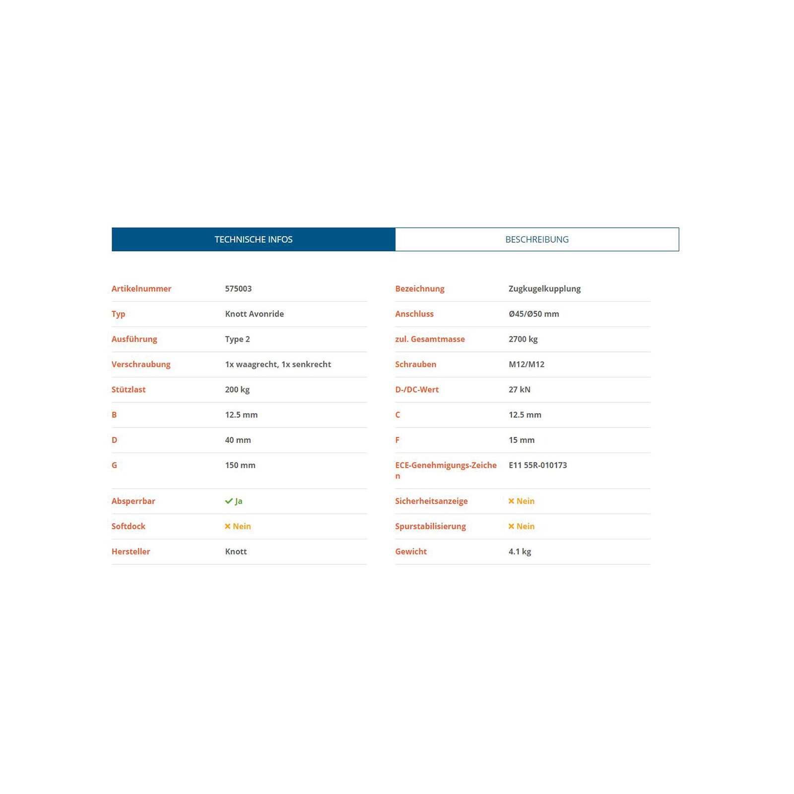 KNOTT Avonride Type 2, -2700 kg, Ø 45/50 mm Lochabstand kreuz 40 mm, Bohrungen Ø 12,5 mm
