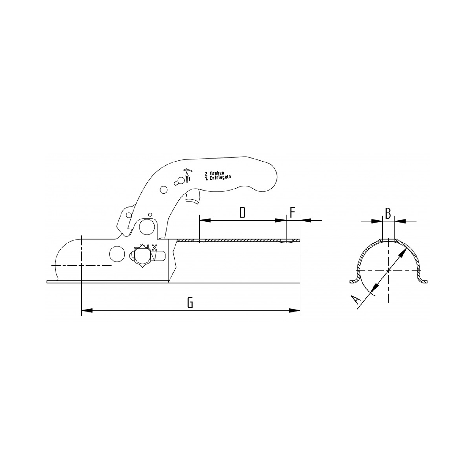 KNOTT Zugkugelkupplung K7,5-C, bis 750 kg,  ⌀ 50 mm, Lochabstand vertikal 90 mm, Bohrungen  ⌀ 12,5 mm, Stützlast 75 kg, Stahl verzinkt