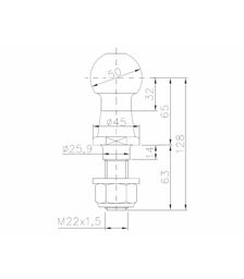 Kupplungskugel, Ø 50 mm, 1500 kg, M22
