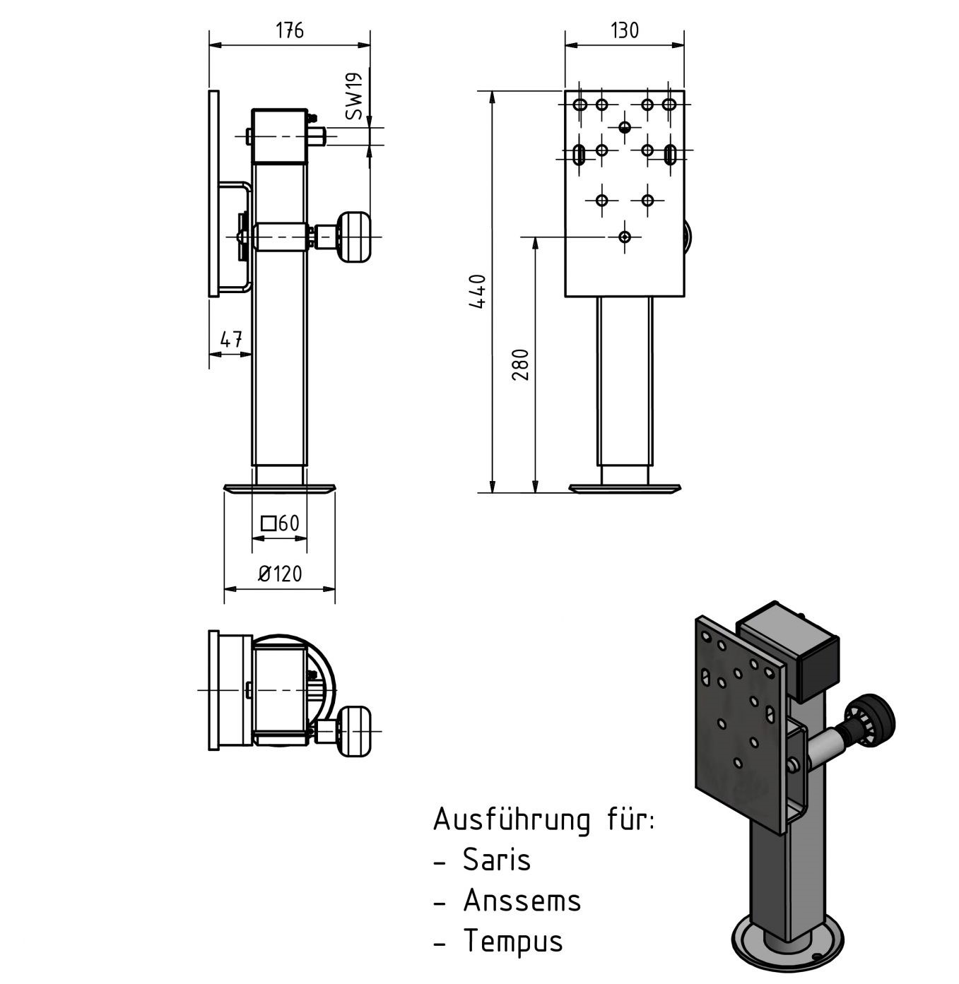 Anhängerstütze für SARIS/ANSSEMS/TEMPUS