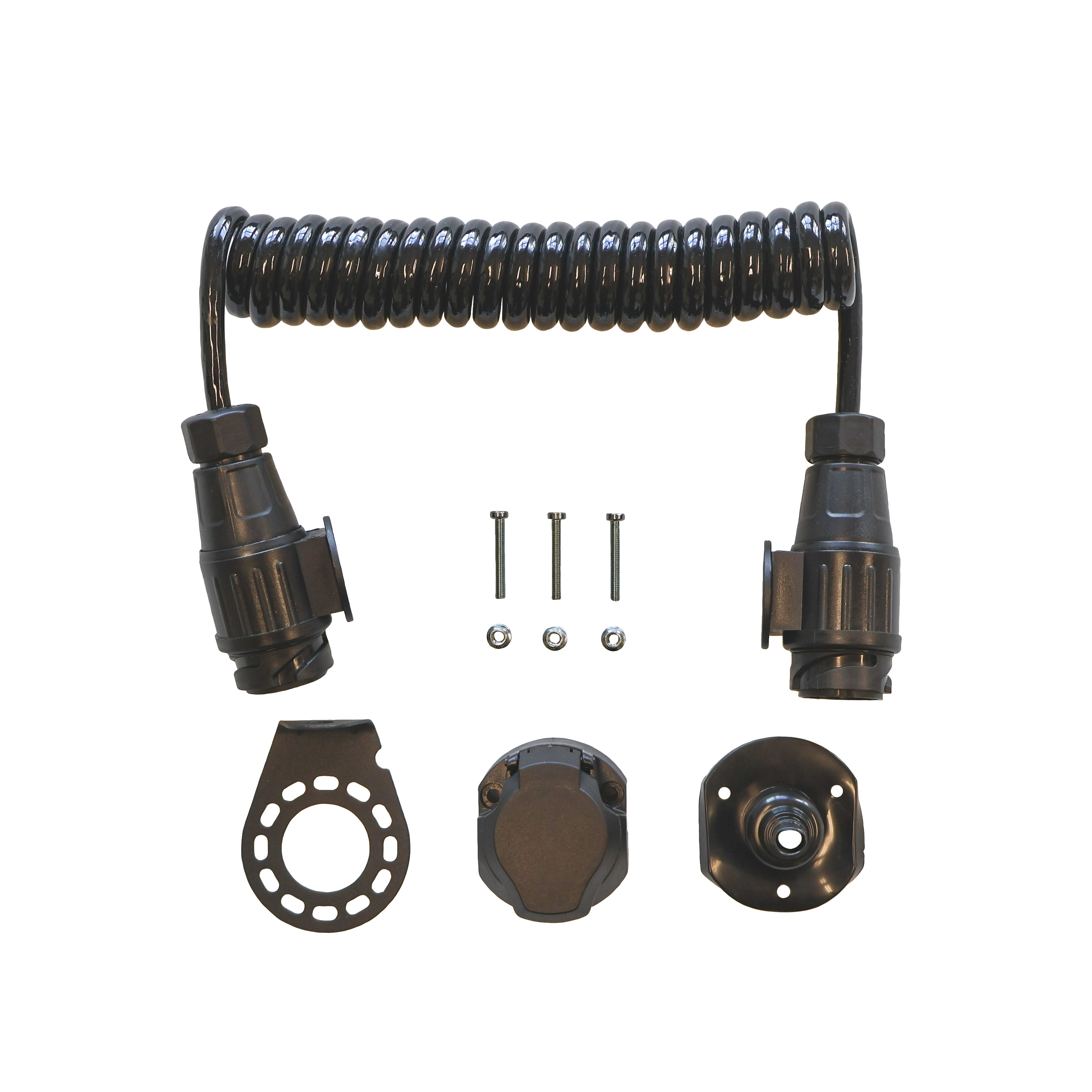 Die hochwertigen Materialien und die flexible Spiralform machen dieses Anhänger Spiralkabel Set besonders langlebig und widerstandsfähig gegenüber Witterungseinflüssen, Schmutz und mechanischer Belastung.