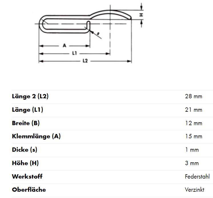 WÜRTH Chassisklemme, 28 x 12 x 0,6 mm VPE: 100 Stück