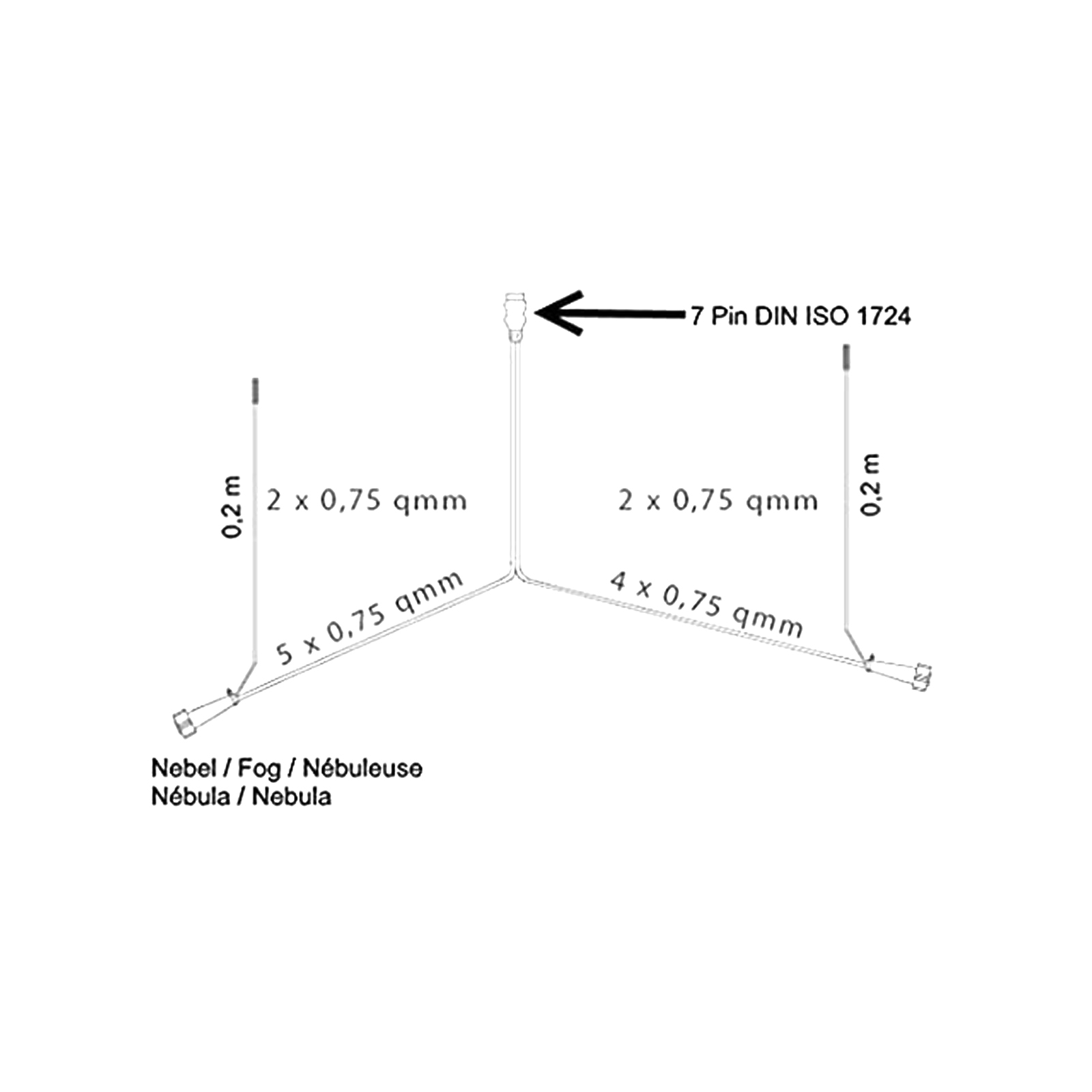 ASPÖCK Anschlusskabel, 9,5 m, 7-polig, 5-polige BV, 2 x Abgang 0,2 m DC-Kabel
