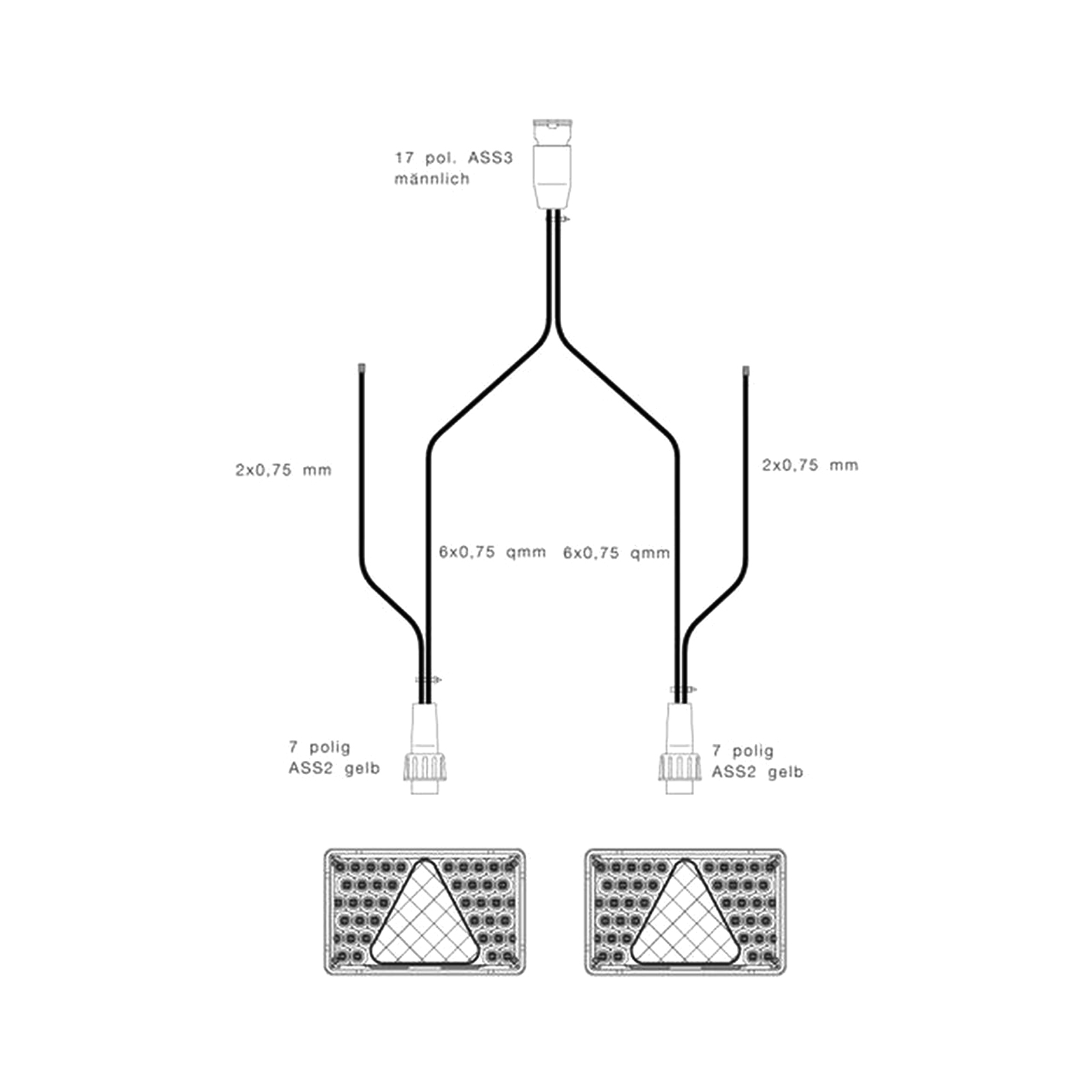 ASPÖCK Verteilerkabel, 6,7 m, 17-poliger  ASS3-Verbinder (männlich), 7-polige ASS2-Verbindung, 2 x Abgang 5,3 m DC-Flachkabel,  für Vorschaltgerät LCG 7 Kanal
