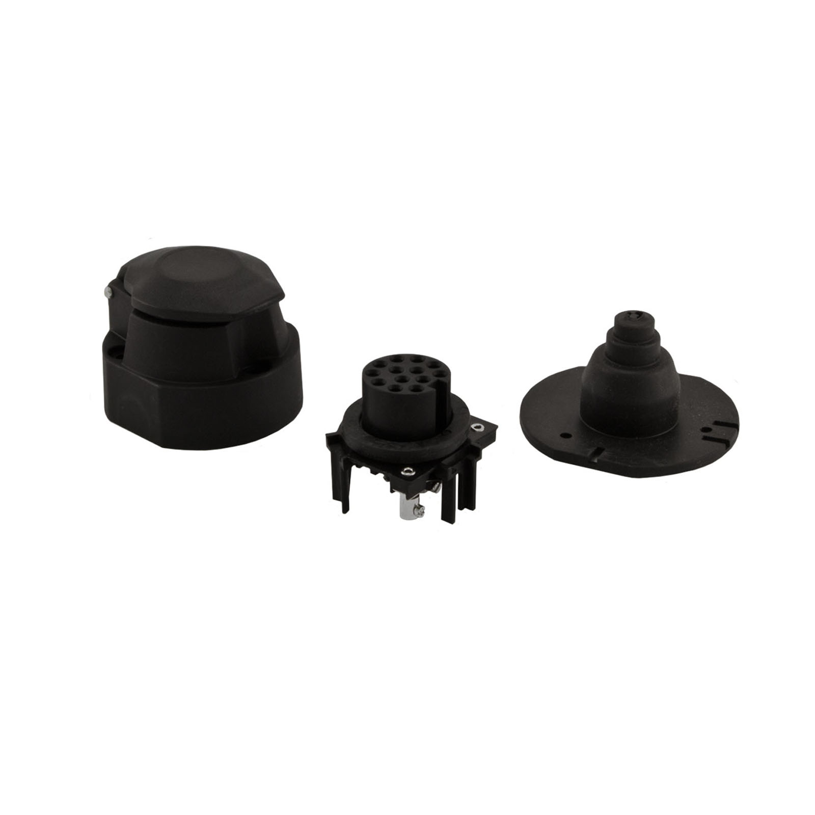 Steckdose, 13-polig, mit Abschaltkontakt für Nebelschlusslicht, Schraubanschluss, Dichtung, Kunststoff