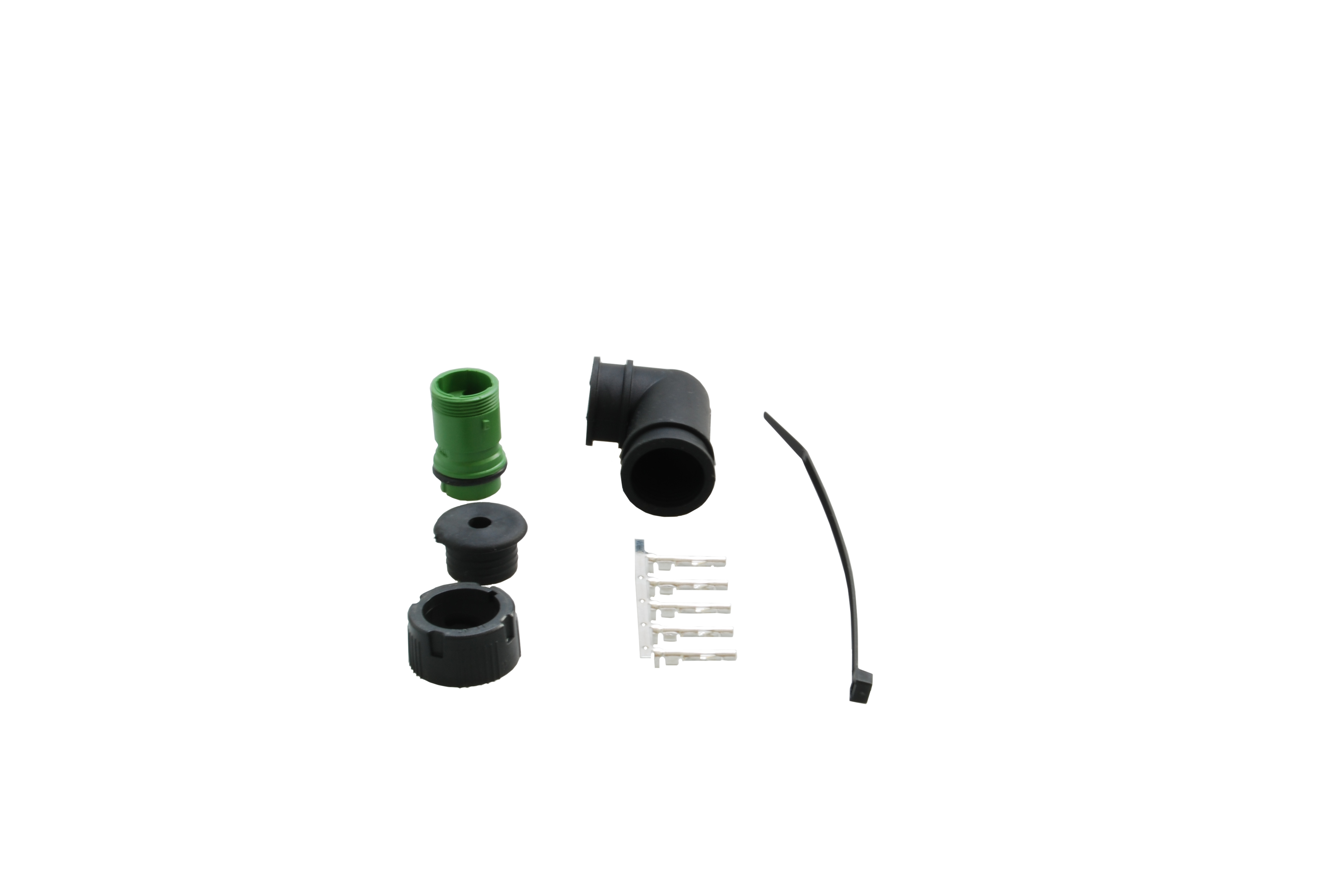 ASPÖCK Bajonettverbinder, 5-polig, grün, weiblich, 90° Tülle, Kontakte, Montageanleitung, im PE-Beutel