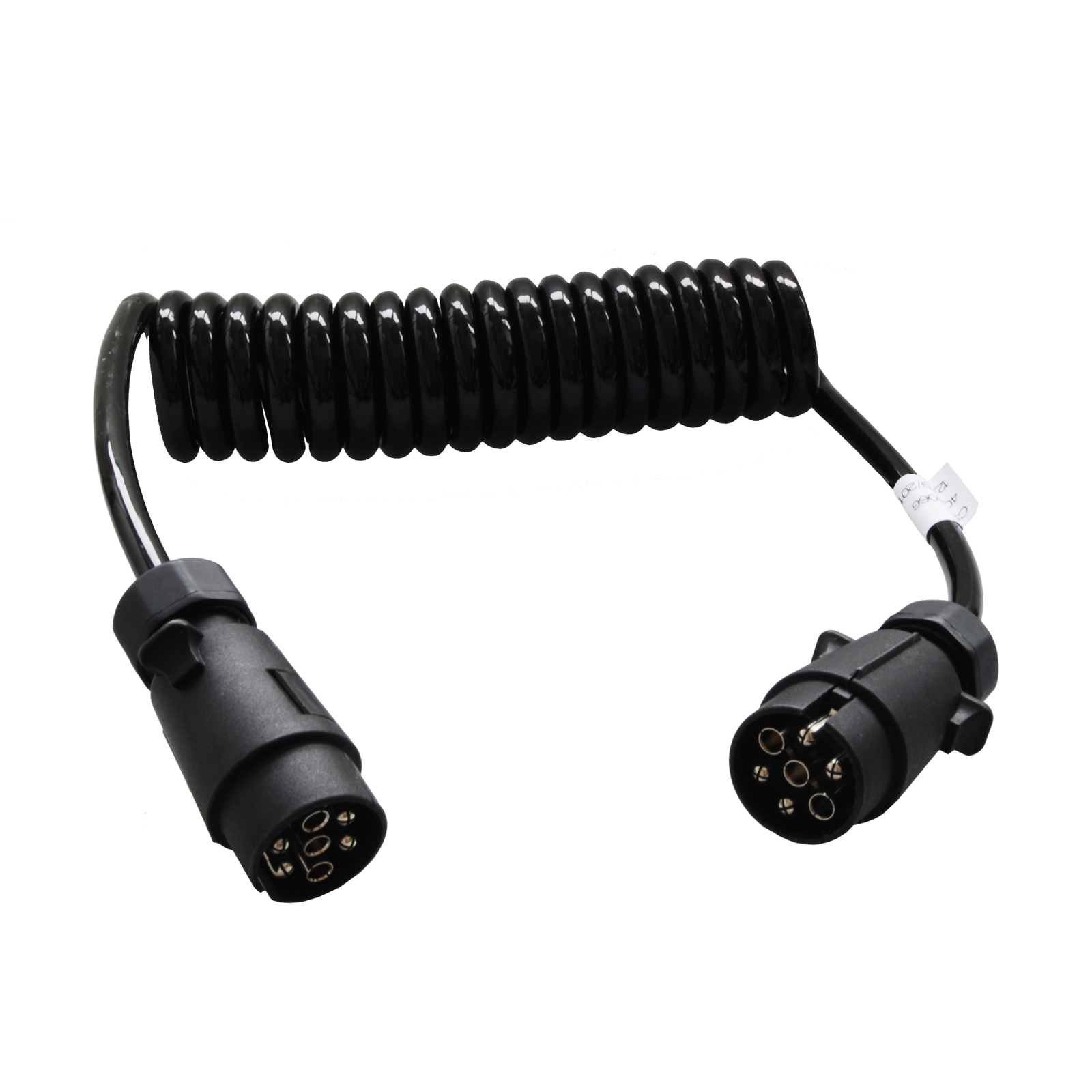 Spiralzwischenkabel, 7-polig, gestreckt ca. 1,75 m lang, mit 2 x Stecker, Kunststoff