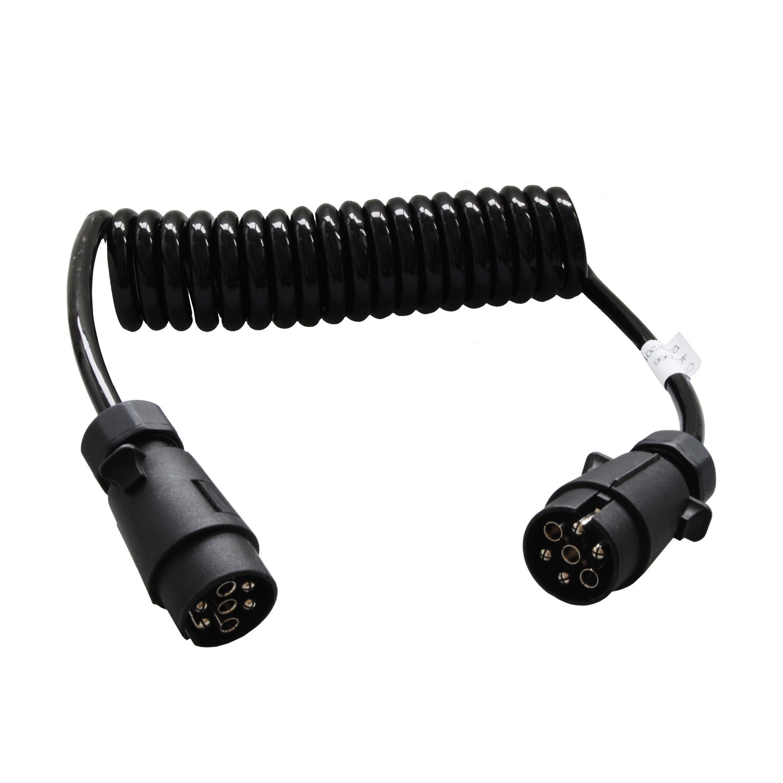 Spiral-Zwischenkabel, 7-polig, gestreckt ca. 3,5 m lang, mit 2 x Stecker, Kunststoff