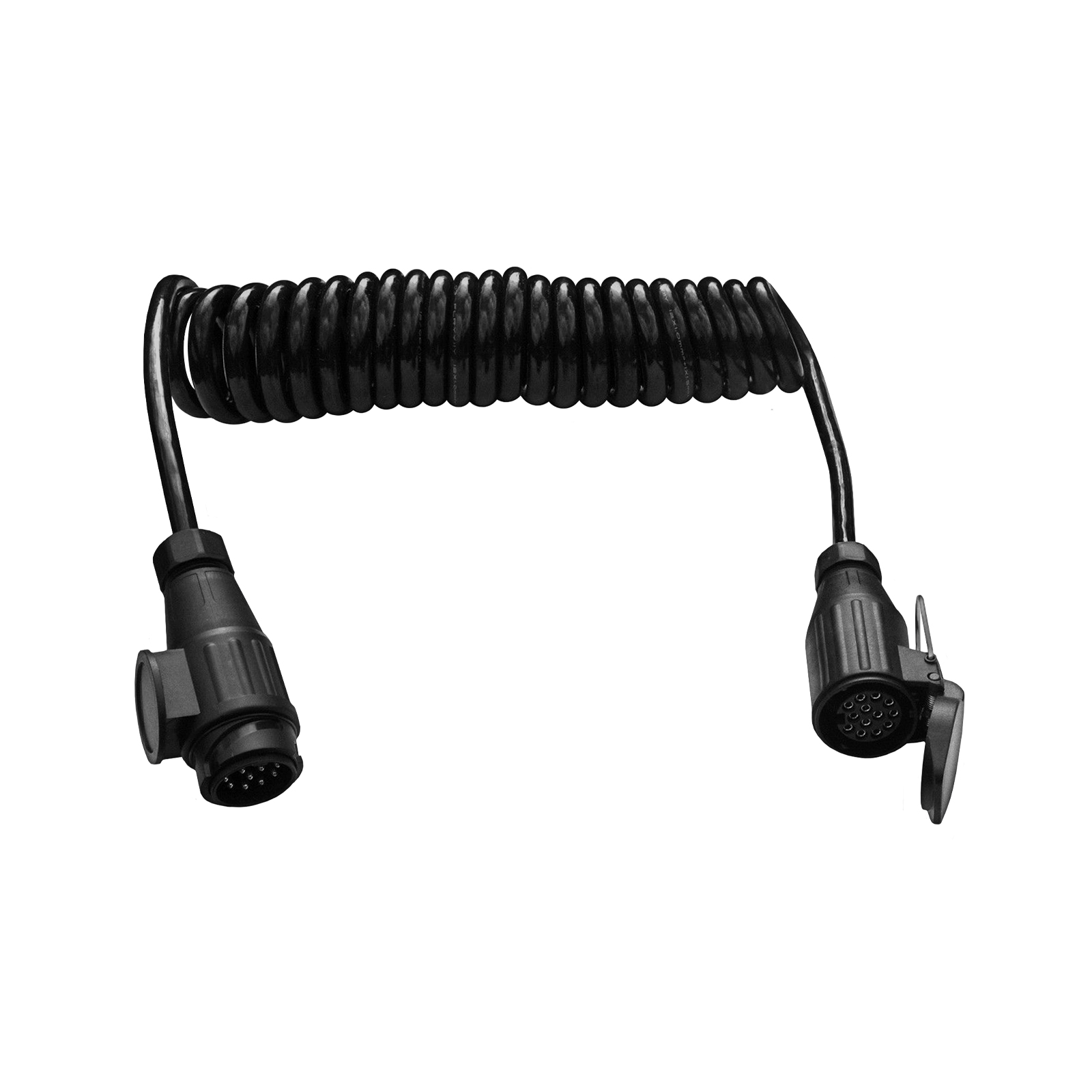 Spiral-Verlängerungskabel, 13-polig, gestreckt ca. 3,5 m lang, 8-polig belegt, mit Stecker/ Kupplungsdose, Kunststoff