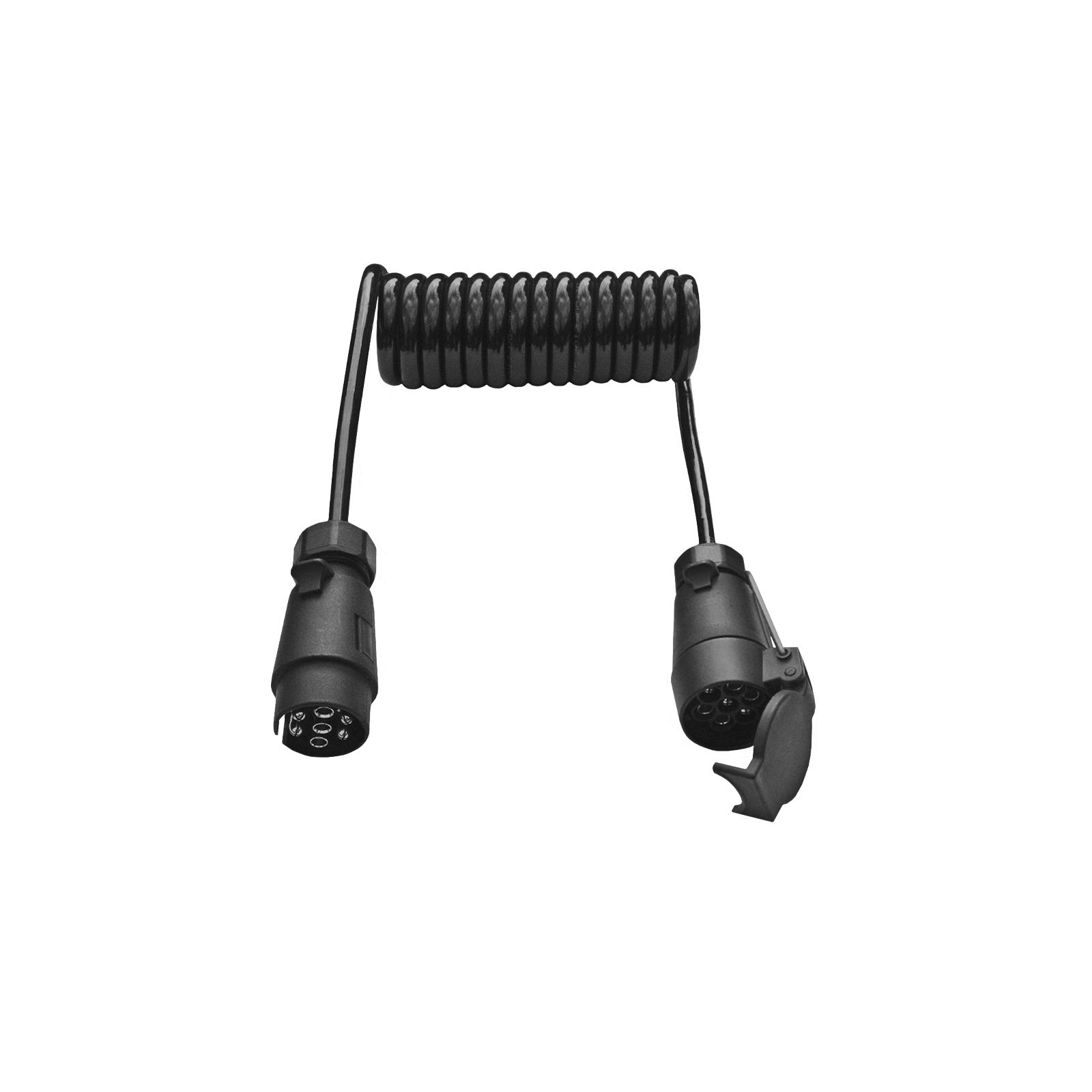 Spiral-Verlängerungskabel, 7-polig, gestreckt ca. 1,75 m lang, mit Stecker/Kupplungsdose, Kunststoff