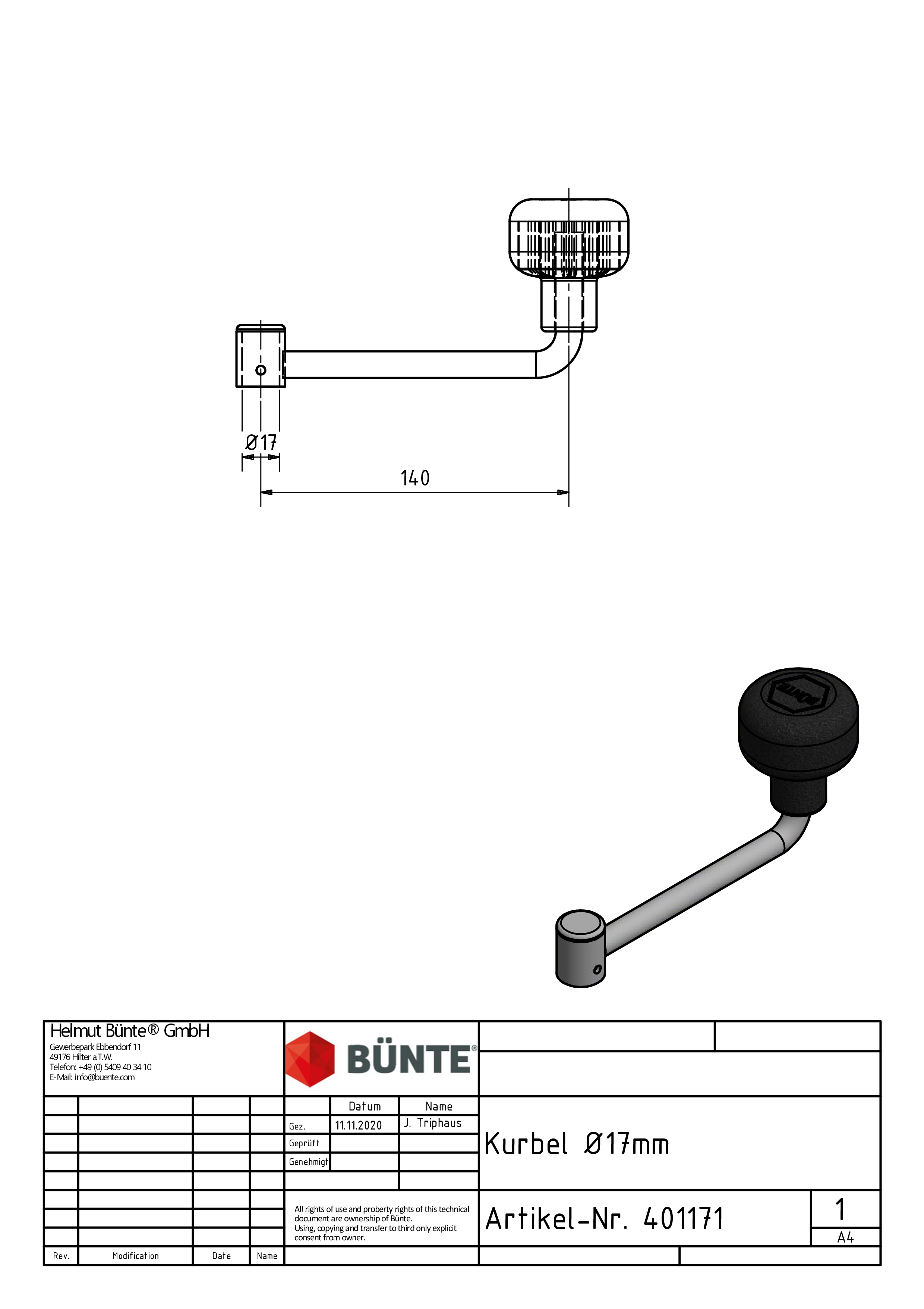 BÜNTE Handkurbel, ⌀ 17 mm, 140 mm lang