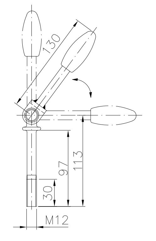 BÜNTE Gelenkknebelschraube, M12, 113 mm lang, für  Klemmhalter 40142, Stahl verzinkt