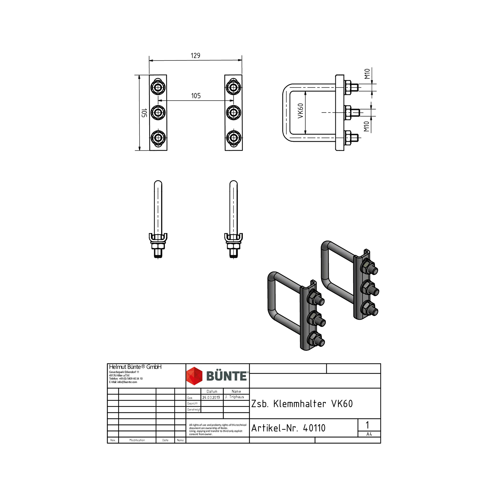 Klemmhalterbefestigung (Paar), für Deichsel  Vkt. 60 mm, Stahl verzinkt
