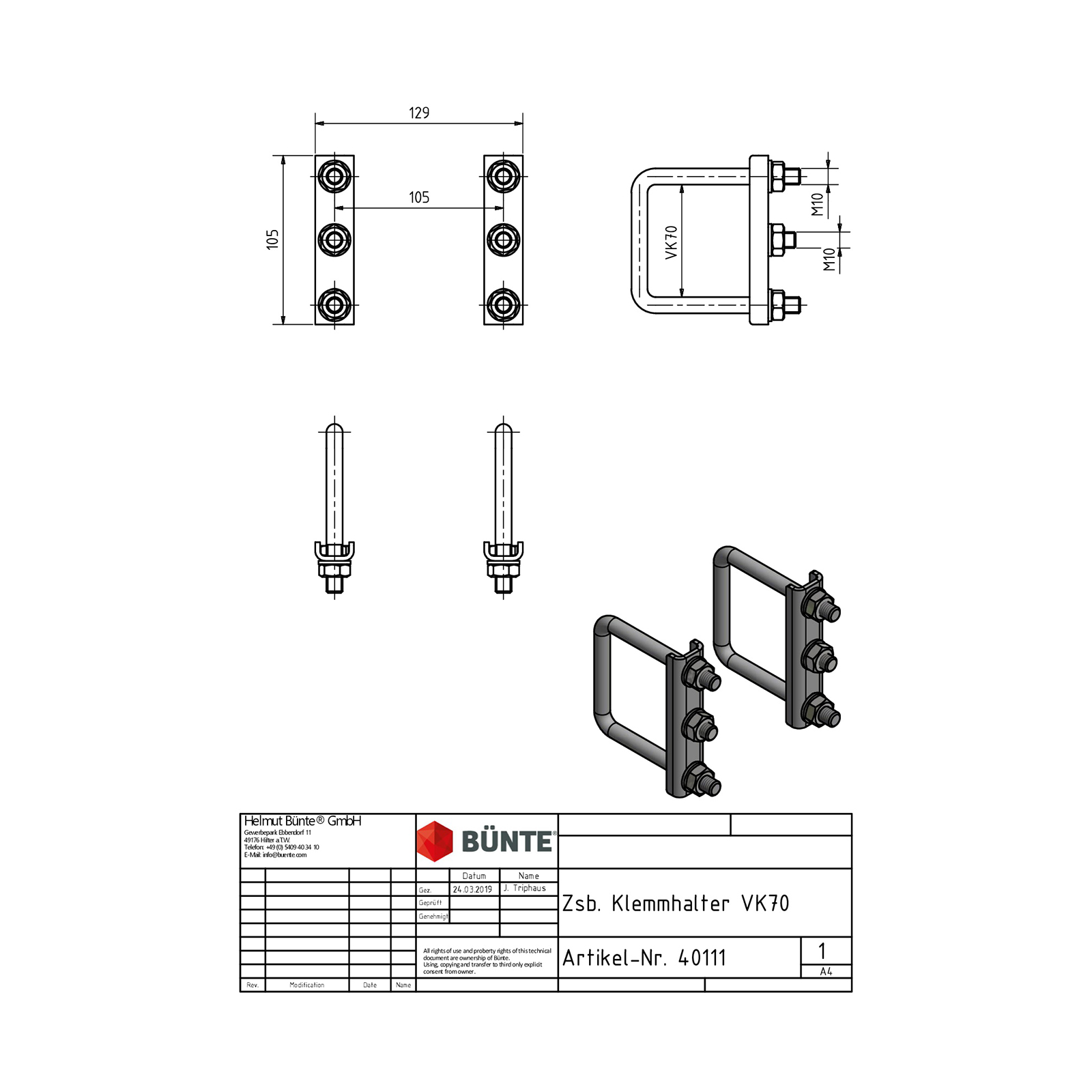 Klemmhalterbefestigung (Paar), für Deichsel Vkt. 70 mm, Stahl verzinkt