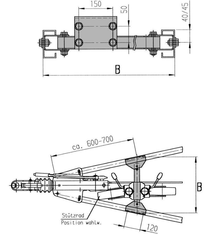 AL-KO Stützradtraverse, 515/535 mm, Stützlast 300 kg, für V-Deichsel bis 3500 kg