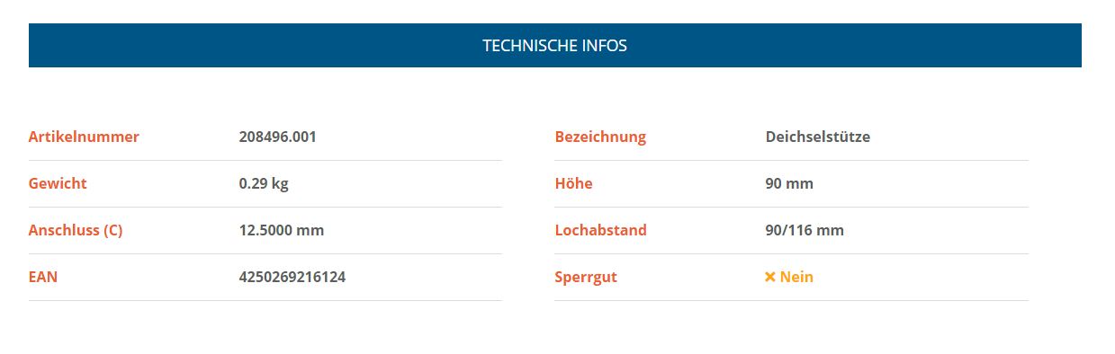 KNOTT Deichselstütze, 90 mm hoch, Lochabstand  90/116 mm, Bohrungen ⌀ 12,5 mm, Stahl verzinkt