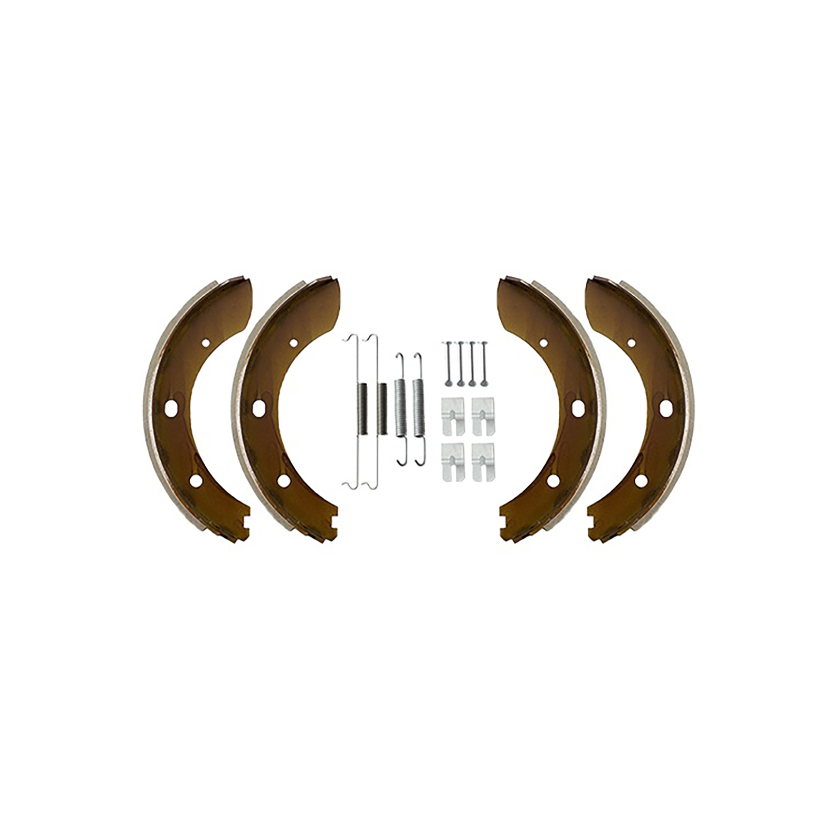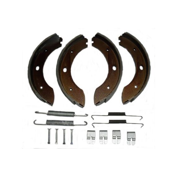 - Komplettsatz für eine Achse (4 Bremsbacken + Federn)
